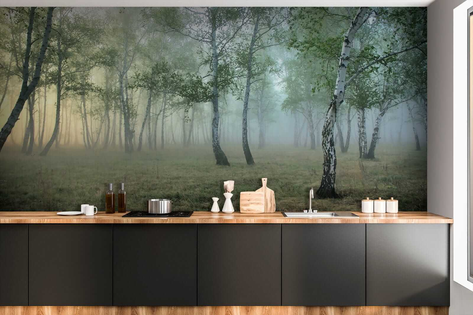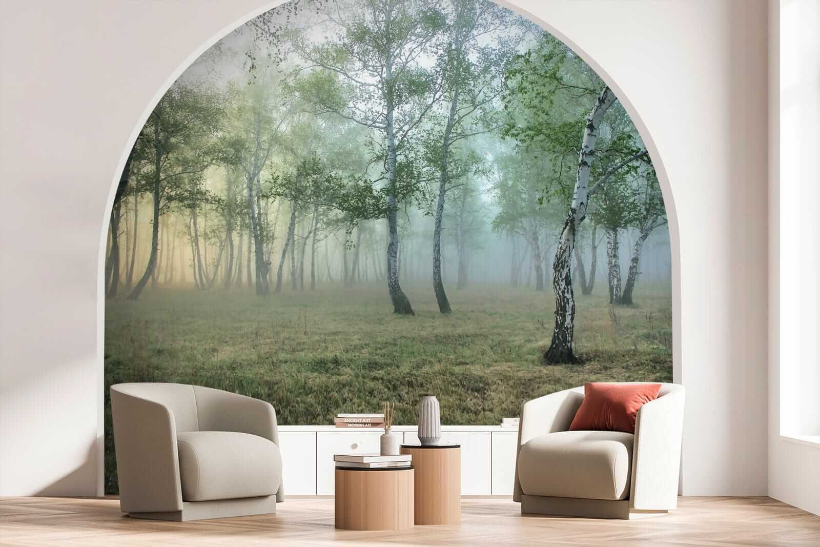 Fotomurales Pintura de un bosque con niebla