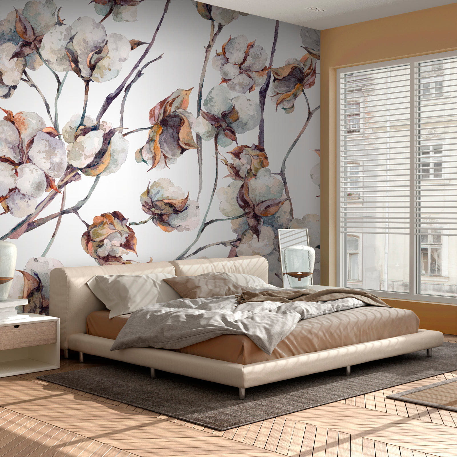 Transforme su espacio con este encantador mural de flores de algodón. Imagínese entrar en una habitación acogedora que parece un soplo de aire fresco. Estas delicadas flores suavizan el ambiente y aligeran incluso los días más duros. Además, hay algo maravillosamente nostálgico en el algodón, como los recuerdos de días soleados y suaves brisas.