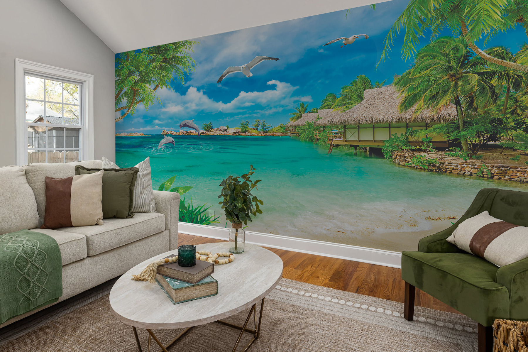 Transforme su espacio en una escapada tropical con este impresionante mural de un pájaro blanco surcando un cielo azul brillante. Imagínese despertarse cada mañana sintiéndose como si estuviera de vacaciones en la playa: palmeras meciéndose, olas rompiendo suavemente en la orilla y delfines dando saltos juguetones sólo para usted. Los colores son tan vivos que te harán olvidar el día de la colada. Esta vibrante obra de arte aporta calma y serenidad a cualquier habitación, ya sea un acogedor salón o un animado despacho. Perfecta tanto para los que sueñan despiertos como para los amantes de la playa, es como invitar al verano a tu casa durante todo el año. ¿A quién no le gustaría recordar los días de sol? Un trocito de paraíso en la pared.