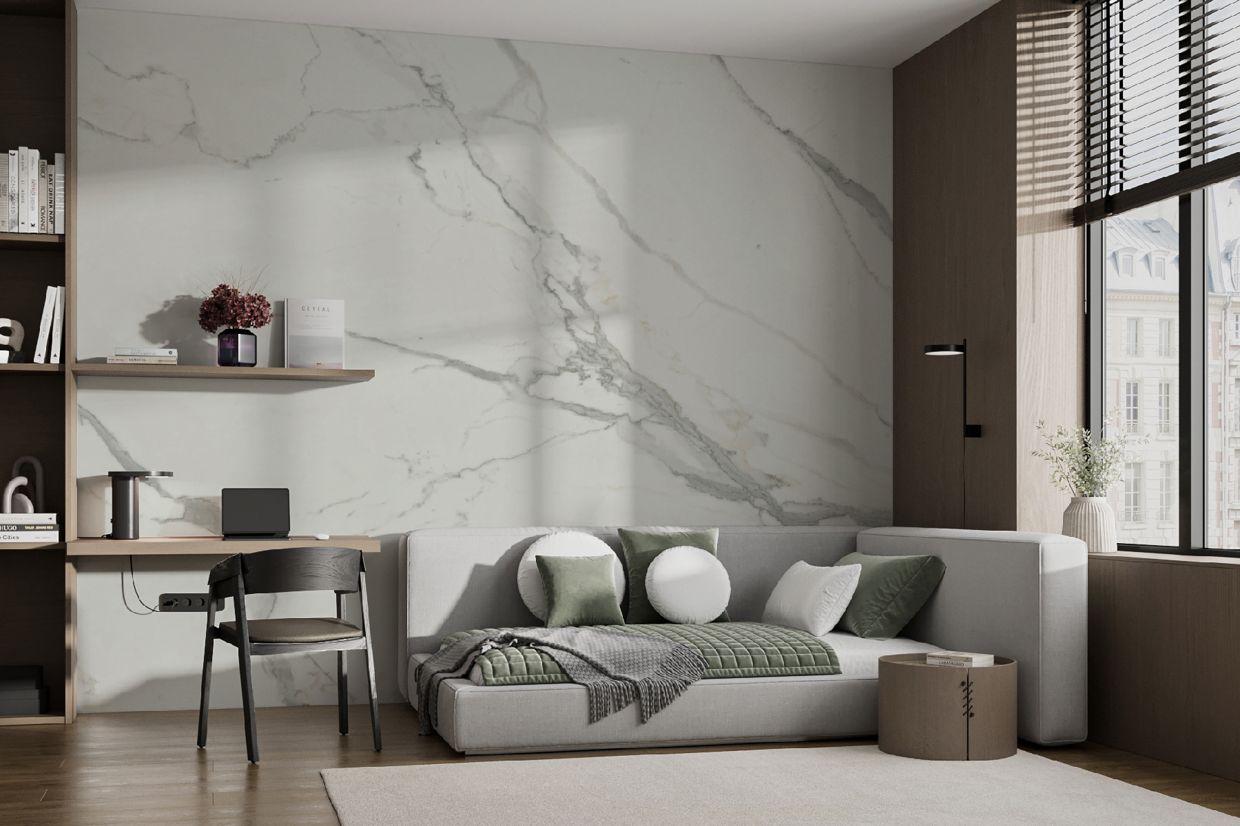 Imagine tener un trocito de calma en casa con este mural de pared “Mármol blanco con sutiles vetas grises”. Es como llevar la elegancia de una elegante encimera de mármol a sus paredes, sin el precio ni las molestias. Las suaves líneas grises le dan un aire sofisticado y acogedor a la vez. Perfecto para ese rincón zen en el que te gusta relajarte o incluso para tu elegante despacho en casa. ¿Y adivina qué? Se despega y se pega. Así que no necesitas pegamento ni frustraciones. Sólo tienes que alisarlo y ¡voilá! una mejora de estilo instantánea. Un amigo lo probó en su cuarto de baño y ahora es su refugio de spa favorito. Cambia totalmente el ambiente, haciéndote sentir elegante y relajado. Es uno de esos cambios sutiles que marcan una gran diferencia.