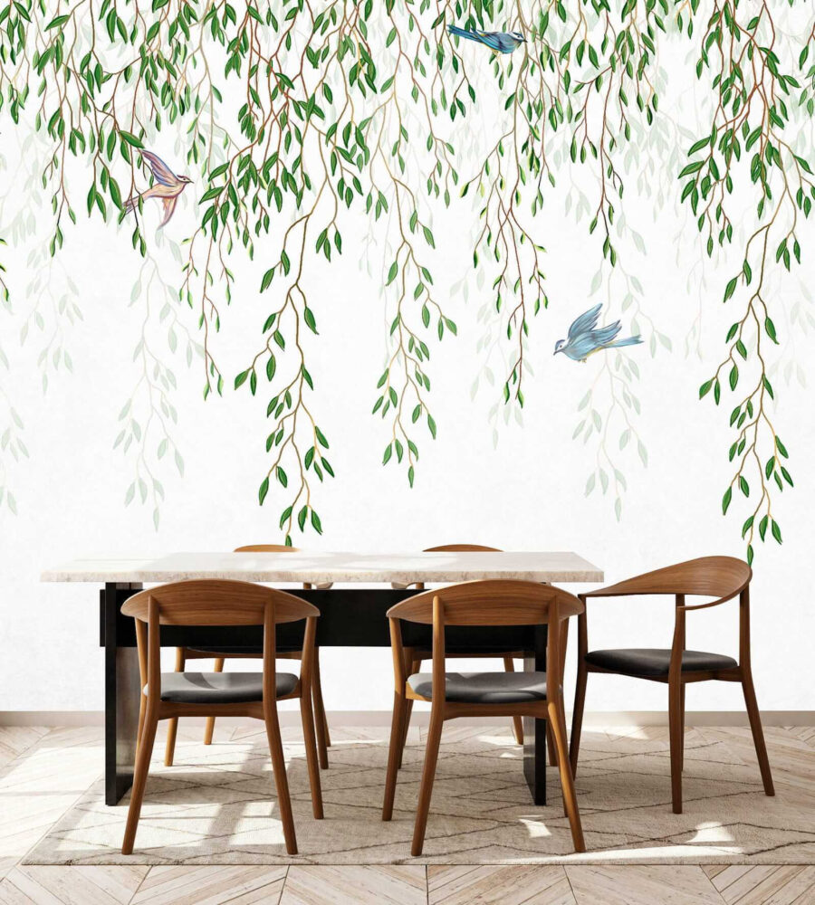Imagine despertarse cada mañana con la relajante visión de pájaros posados en delicadas ramas, bañadas en los suaves tonos de la acuarela. Este mural de pared “Pájaro sentado en una rama” no es una decoración normal y corriente, es como un mini-paisaje a un remanso de paz y frondosidad justo en su casa. Perfecto para los amantes de la naturaleza o para cualquiera que necesite un lugar tranquilo en medio del ajetreo de la vida. Ideal para un dormitorio, un salón o incluso un acogedor rincón de lectura… ¡donde una taza de té y un buen libro parecen casi necesarios! Los suaves verdes y marrones transicionan maravillosamente con la luz, creando un flujo sereno y continuo a través de la pared. ¿Instalación? Pan comido. Casi como pintar su propia historia… Si las paredes pudieran hablar, susurrarían paz con este mural.