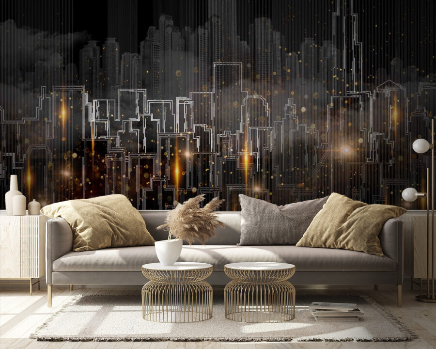 Transforme cualquier habitación en un bullicioso paisaje urbano con este cautivador mural de pared. Imagine contemplar un horizonte lleno de vida, donde las formas abstractas bailan con luces cálidas, desprendiendo un ambiente acogedor a la vez que vibrante. Perfecto para ese rincón que necesita carácter o para la oficina en casa que anhela un poco de inspiración. Imagínese a un amigo pasando por allí, tomando un café y asintiendo con la cabeza ante su elegante elección. El mural aporta un toque de encanto urbano que casi te hace sentir el latido de la ciudad. Es como tener una mini metrópolis en tu espacio, sin atascos de tráfico incluidos.