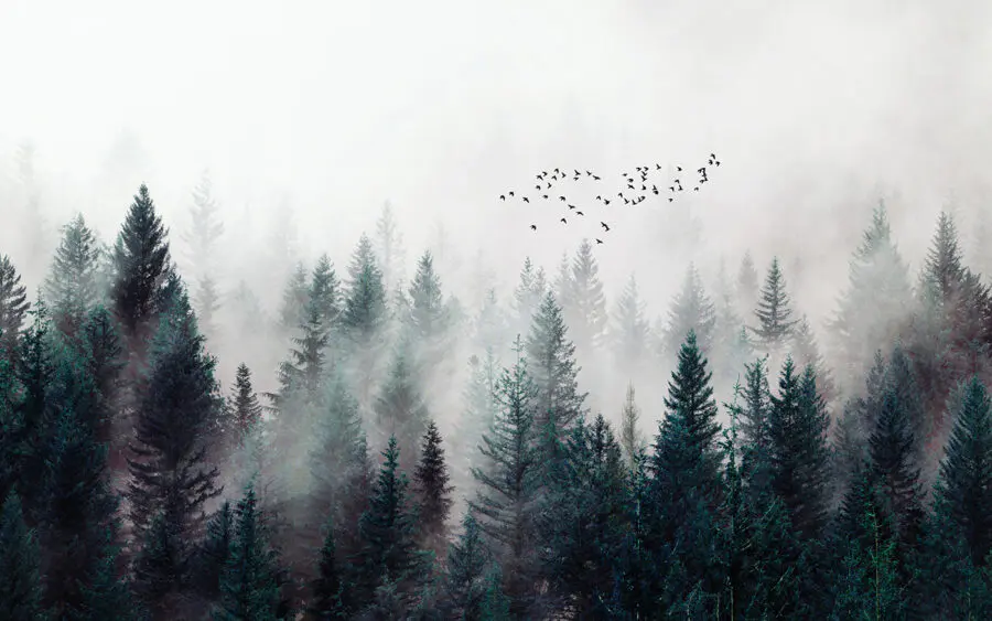 Transforme su espacio con este impresionante mural de pared que muestra una bandada de pájaros surcando un cielo de ensueño. Imagínese adentrándose en un bosque sereno donde el susurro de los árboles susurra historias de aventuras. La suave niebla añade un toque de misterio, haciéndote sentir como si estuvieras perdido en la naturaleza, incluso en tu salón. Invita a soñar despierto y a reflexionar. Puede que tus amigos te pregunten si has traído la naturaleza al interior. Perfecto para esos rincones acogedores o para una pared vibrante, este mural combina sin esfuerzo el arte con la tranquilidad, creando un refugio para relajarse e inspirarse.