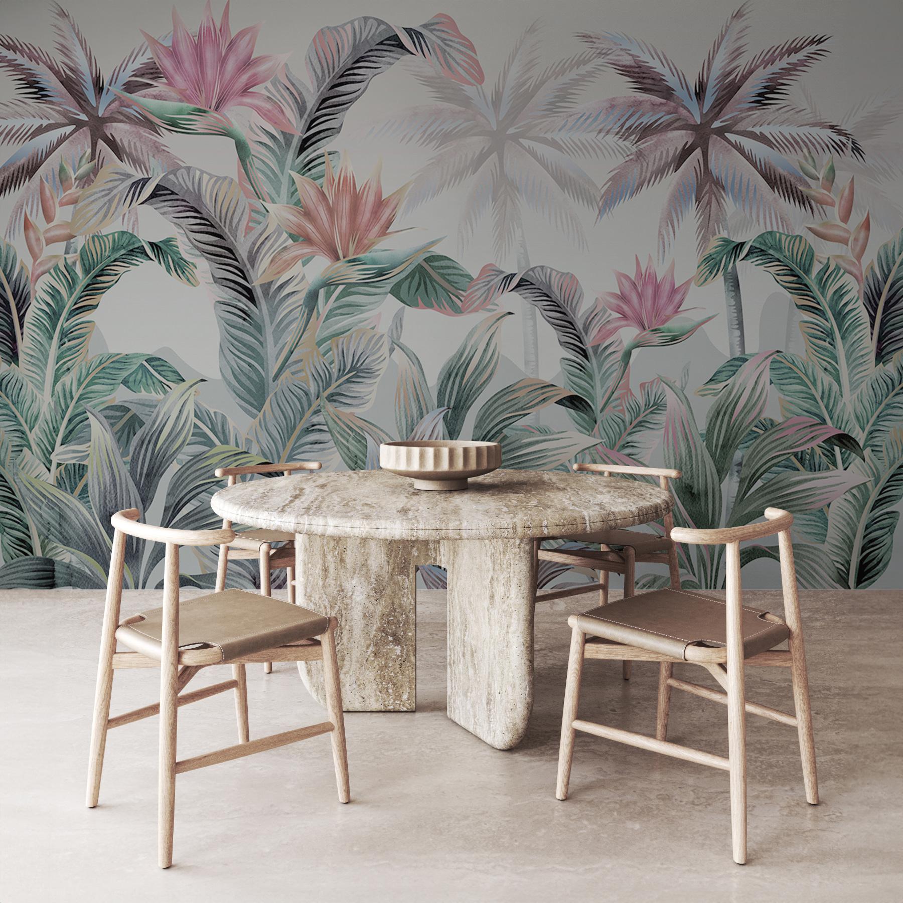 Imagínese esto: su salón acaba de ser transportado a una exuberante escapada tropical con este mural de pared “Paraíso Tropical”. Es como entrar en un sueño donde hojas vibrantes y follaje exótico bailan a tu alrededor. Los verdes, rosas y azules se entremezclan en esta obra maestra de acuarela, trayendo la magia de la naturaleza al interior. Tanto si está tomando un café por la mañana como un atrevido cóctel por la noche, sentirá el susurro sereno de la brisa de la selva. Es perfecto para transformar una pared lisa en una pieza llena de vida y color. ¿Quién necesita billetes de avión cuando tiene el paraíso en casa?