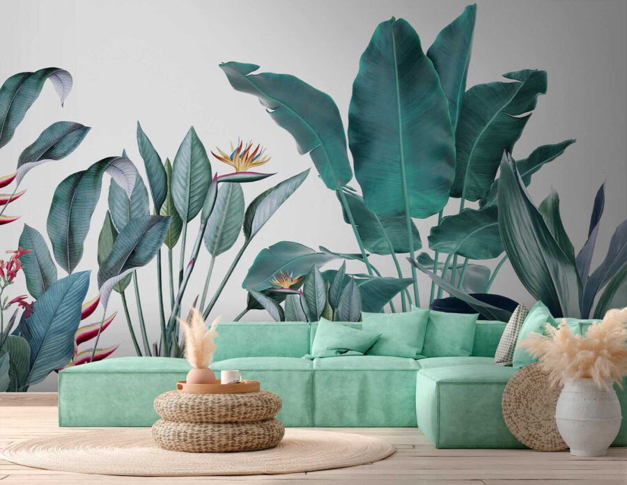 ¿Quiere transformar su espacio? Eche un vistazo a este magnífico mural de pared llamado “Follaje tropical con colores vivos”, ¡perfecto para llevar un toque de selva a su salón! Imagínese que se despierta con esta vegetación vibrante todos los días… es como unas mini vacaciones para sus ojos. La mezcla de colores vivos y los intrincados detalles de las hojas y las flores te harán sentir como si estuvieras en un exuberante paraíso tropical.