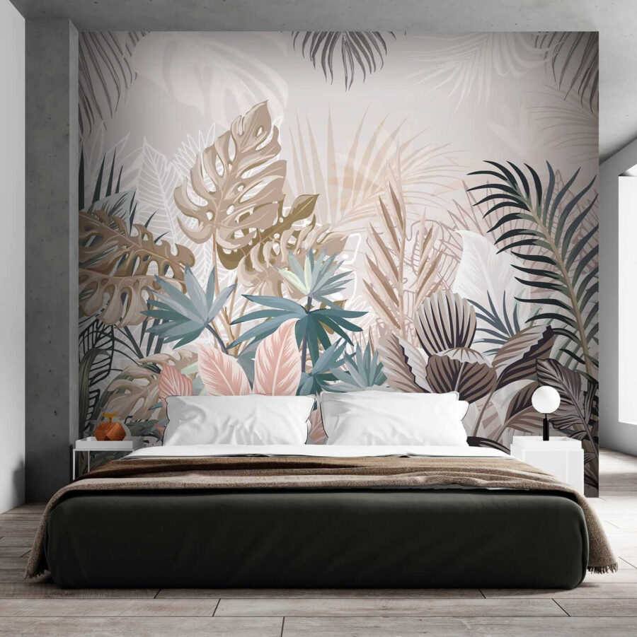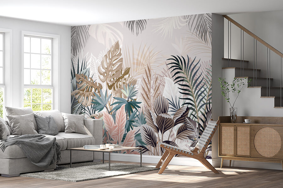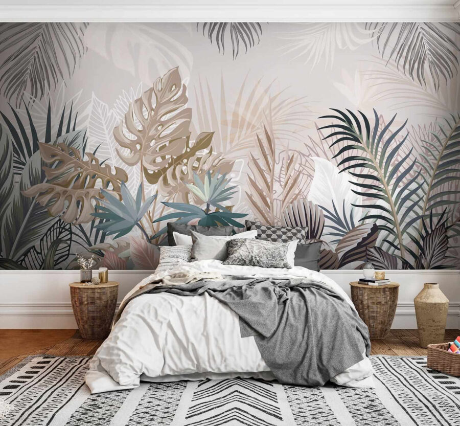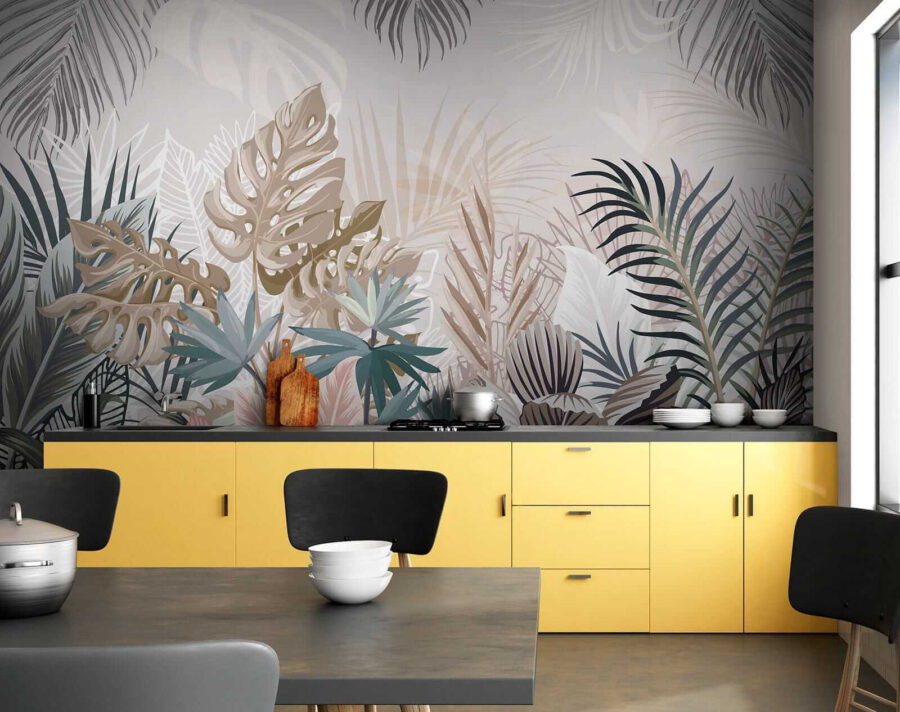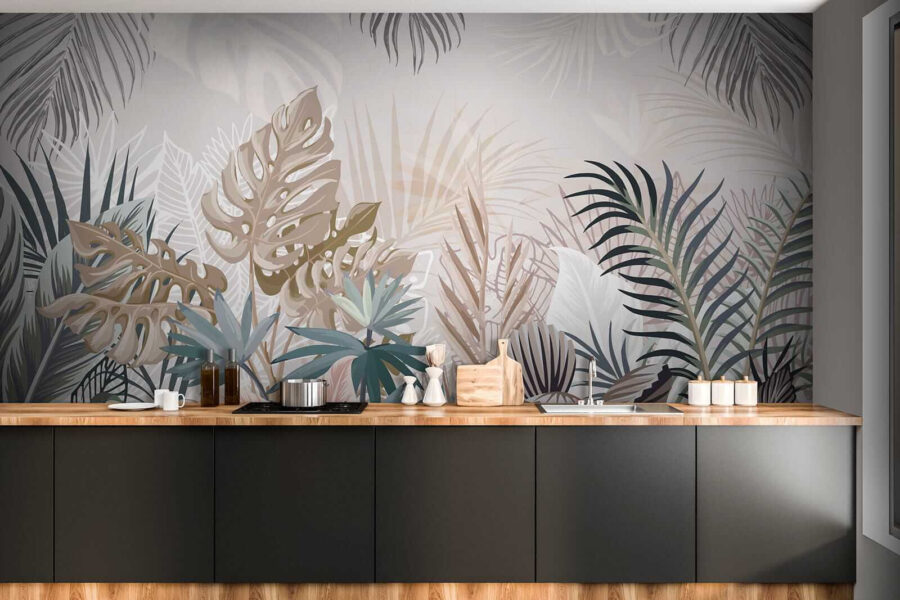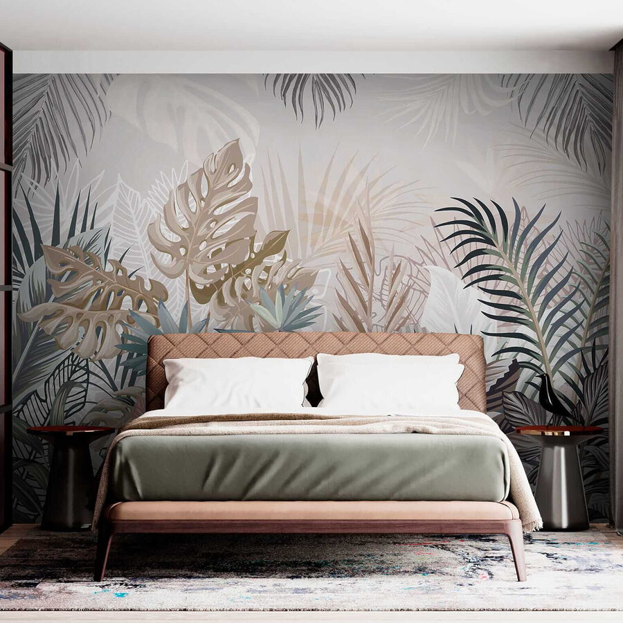 1 valoración en Fotomurales Hojas tropicales en tonos apagados