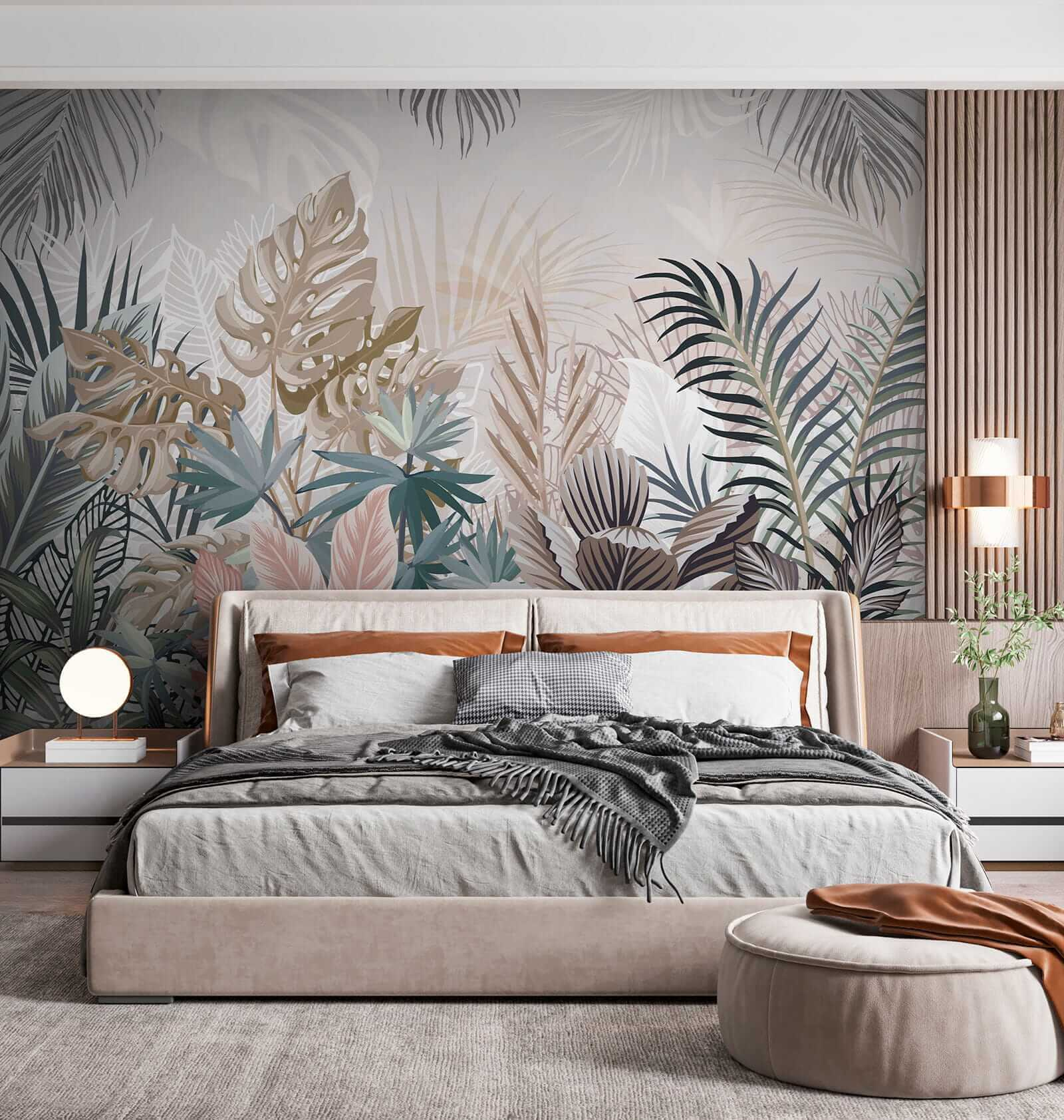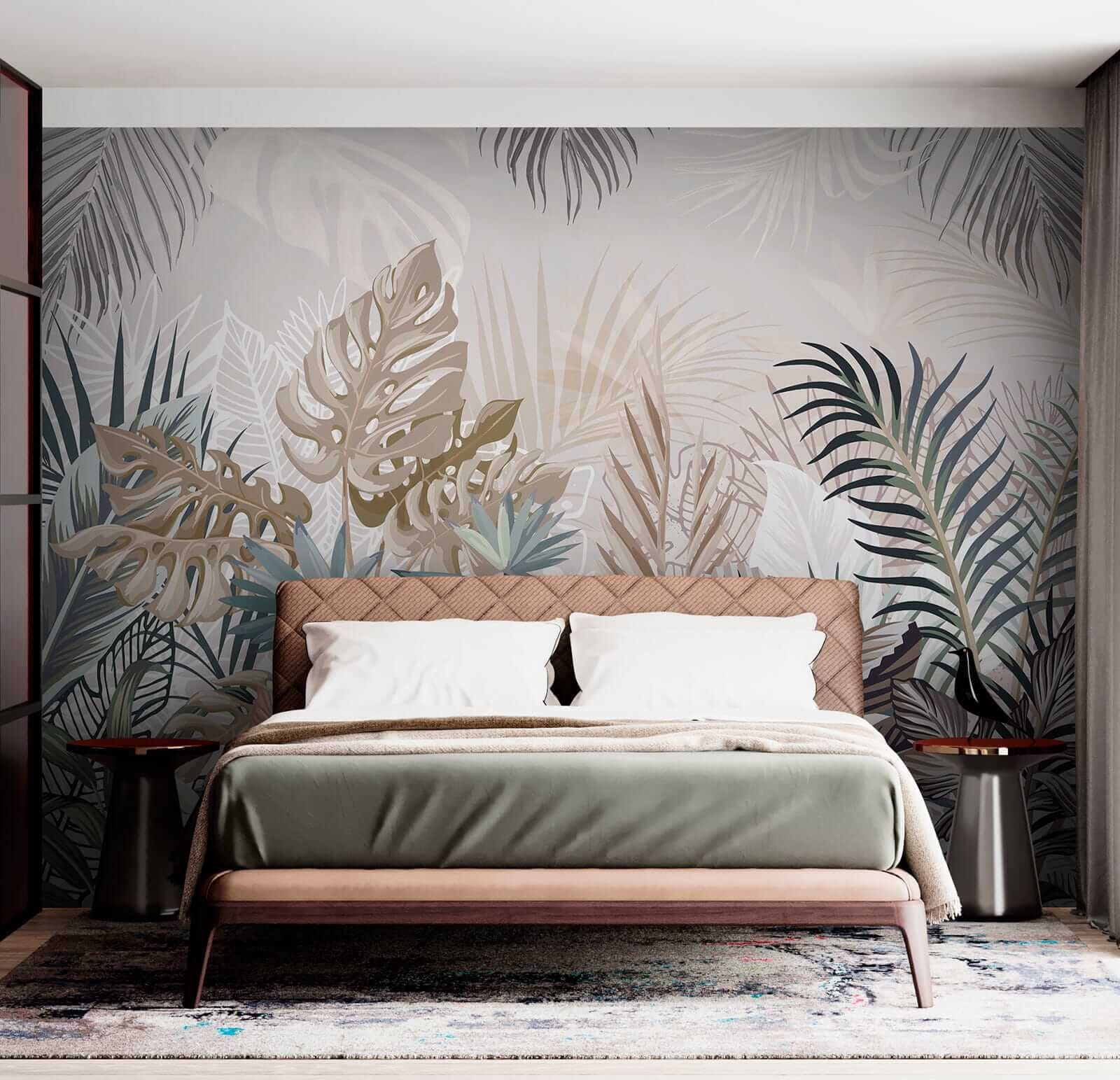 1 valoración en Fotomurales Hojas tropicales en tonos apagados