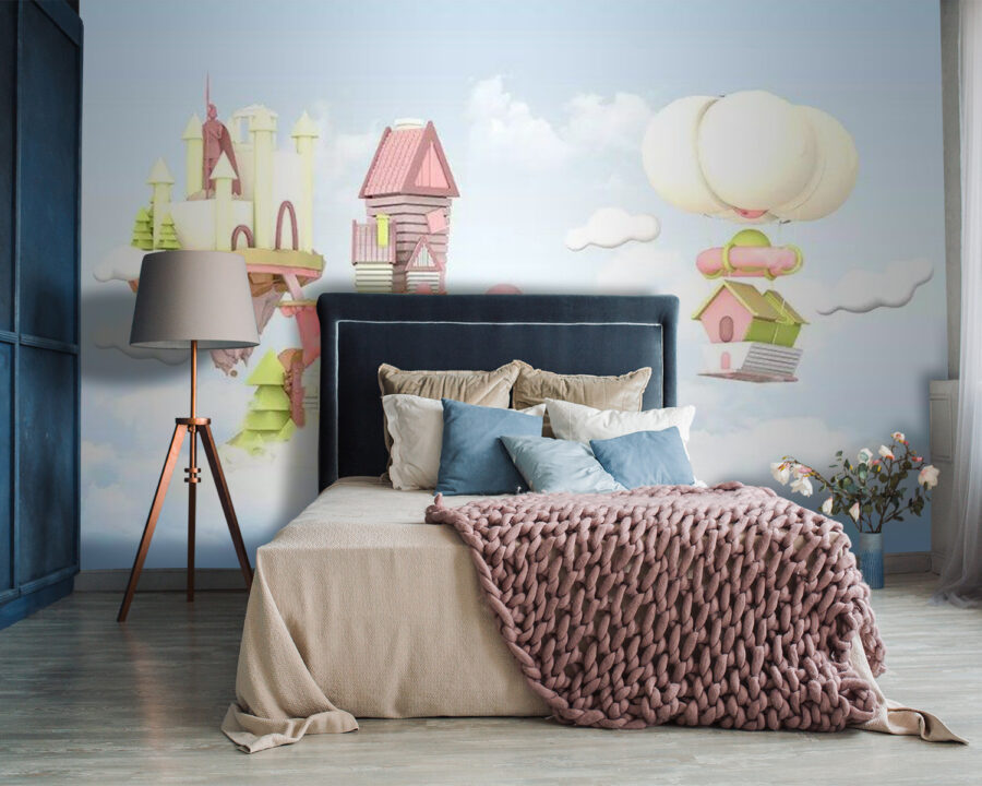 Transforma una pared aburrida en una escapada encantadora con este mural de encantadoras casas de dibujos animados flotando en el cielo. Es como un caprichoso sueño hecho realidad. Imagínese acogedoras casitas enclavadas entre esponjosas nubes, cada una con su peculiar diseño, invitando a una sensación de calma y asombro. Perfecto para la habitación de un niño o para cualquier espacio en el que florezca la imaginación, este mural despierta la alegría y la creatividad lúdica. Imagínese tomando el té mientras contempla su propio pueblo en el cielo o escuchando las risitas de los niños mientras inventan historias sobre sus vecinos del aire. Es algo más que decoración: es un portal a un mundo mágico.