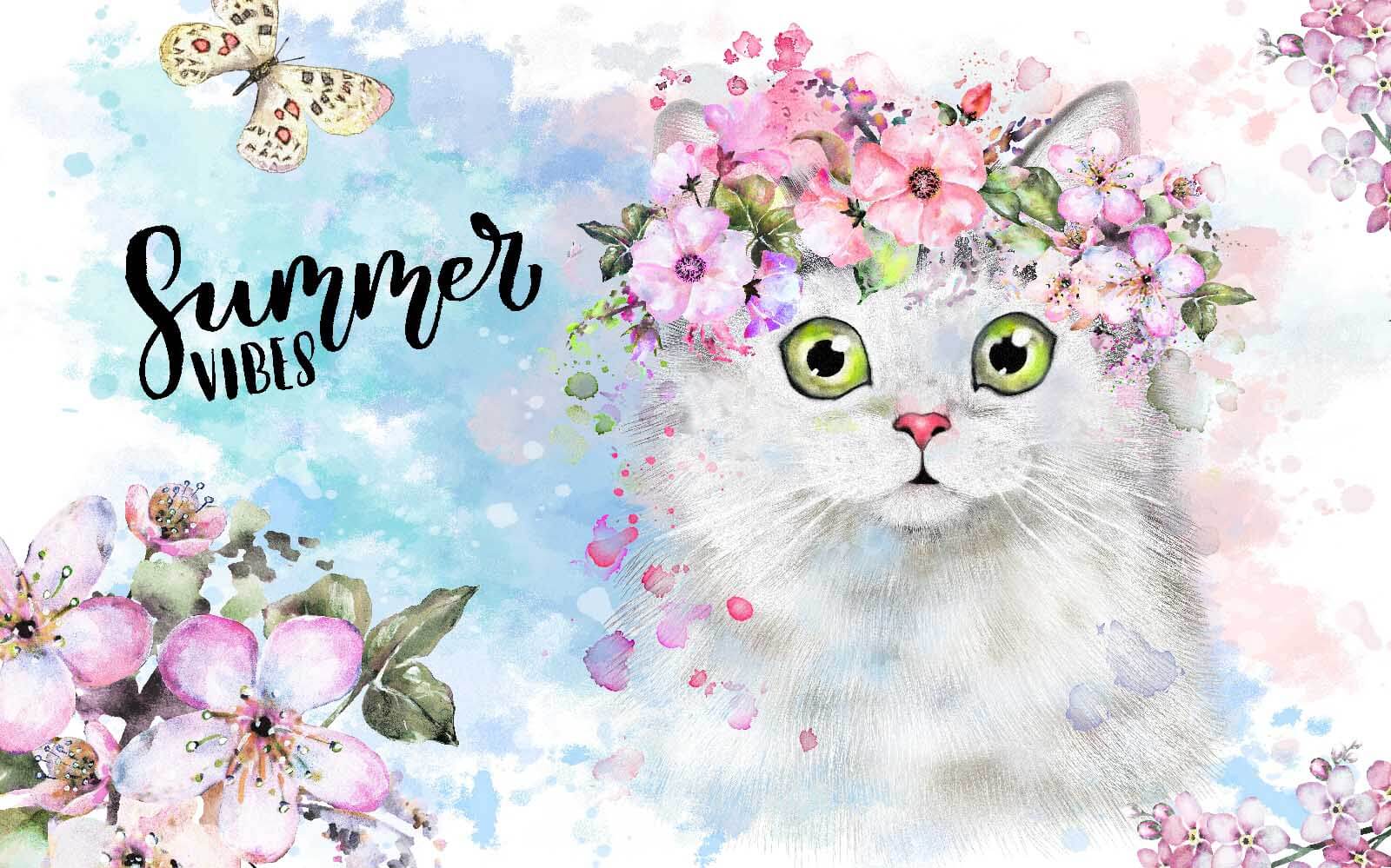 Transforma cualquier habitación con este encantador mural de pared que muestra un encantador gato adornado con un ramo de flores. Imagina que entras en un espacio donde te recibe esa cara entrañable, ¡es como si un amigo peludo te animara! Las suaves vibraciones de acuarela crean una sensación de calma, perfecta para un rincón acogedor o una vibrante sala de juegos.