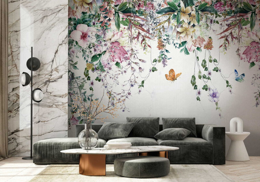 Este mural no es sólo decoración, es un estado de ánimo. Imagínate relajándote después de un largo día, rodeado de flores y mariposas flotantes… ¿tranquilo, verdad? Es como tener tu trocito de paraíso personal. ¿Por qué esperar? Deje que sus paredes cuenten una historia de elegancia y encanto.