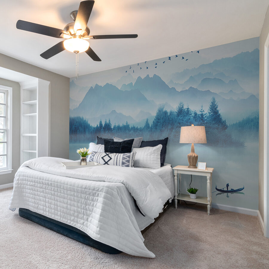 ¿Y lo mejor? Las montañas neblinosas del fondo le dan ese aire de ensueño, casi mágico. Casi puedes oler los pinos y oír el tranquilo aleteo de las alas. El lugar perfecto para tomar un café por la mañana o reflexionar por la tarde, ¿verdad? Además, es versátil: por algo forma parte de la categoría “Murales populares”. A todo el mundo le encanta la tranquilidad que transmite.