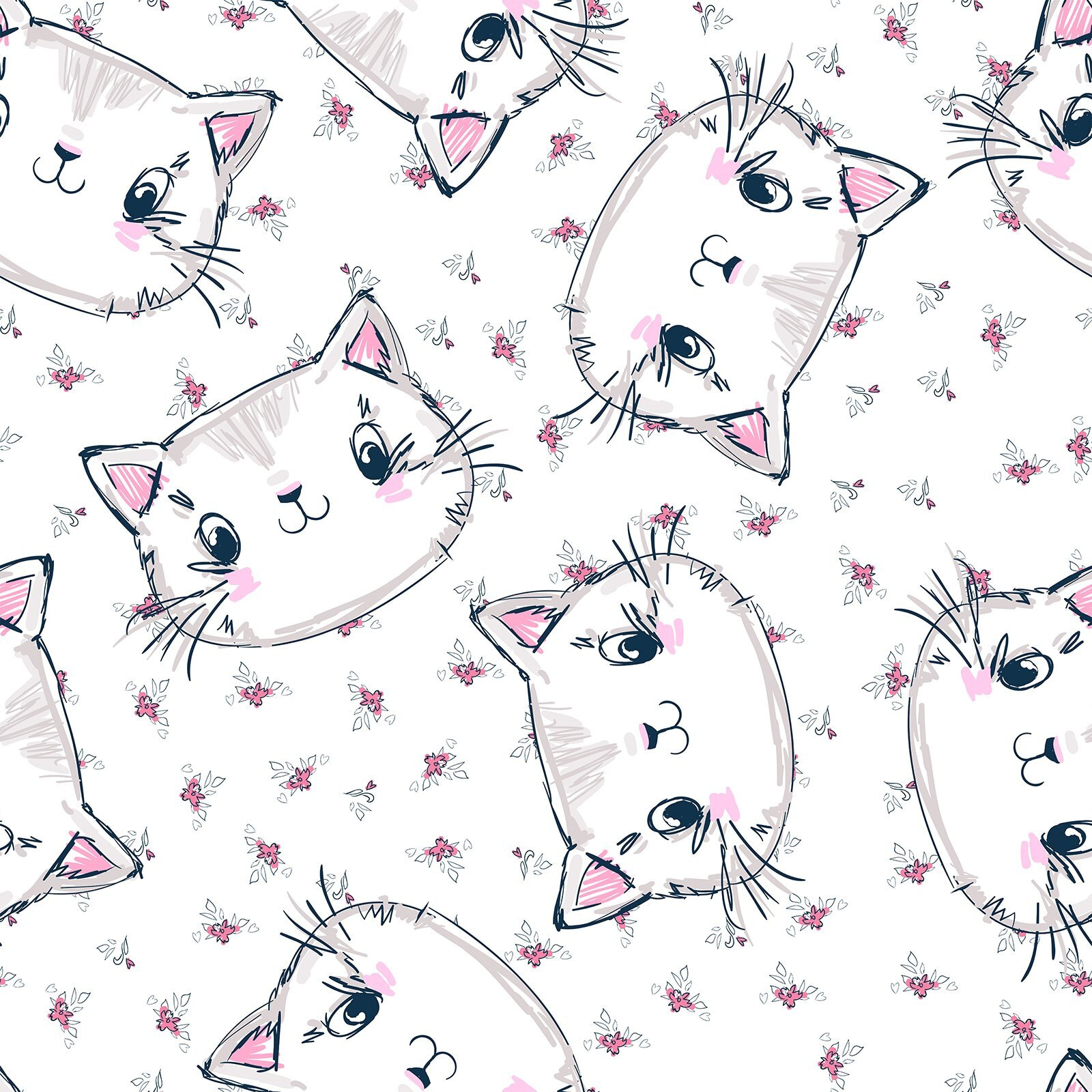 Transform any room into a cozy cat haven with this charming wall mural. Picture soft, fluffy kitty faces playfully scattered on a bright white backdrop, cuddling up with tiny pink flowers. It’s the kind of design that instantly brings a smile—like getting an unexpected cuddle from your own furry friend. Imagine sipping coffee while the kitties keep you company, or having a giggle as the little ones point and shout, “Meow!” This mural’s perfect for cat lovers or anyone wanting their space to feel warm and whimsical. Add a touch of playful charm that makes every day feel delightfully cheerful!