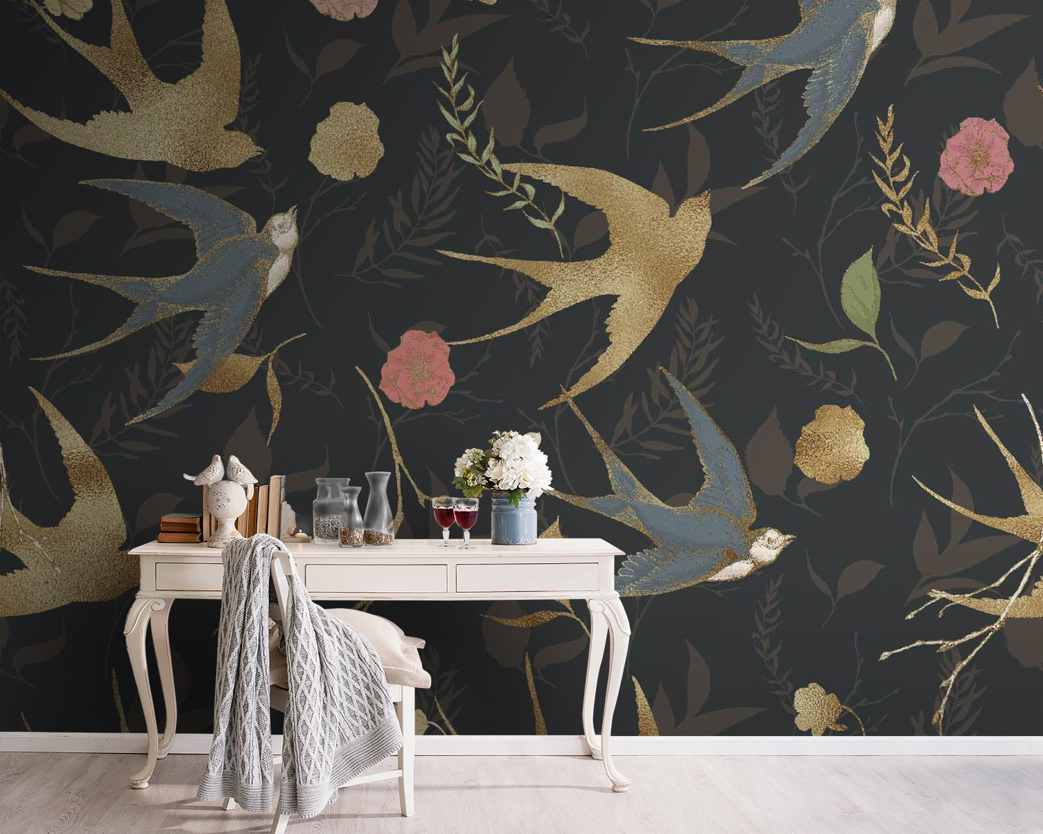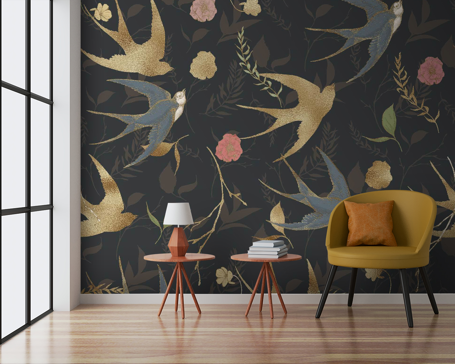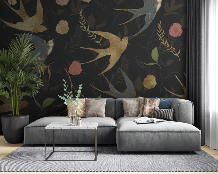 Transforme cualquier espacio con este encantador mural de pared con un patrón de pájaros caprichosos y flores encantadoras. Imagínese entrar en su habitación y ser recibido por animados remolinos de color, esos pájaros casi parecen estar en pleno vuelo, listos para llevarle a una aventura. Los toques florales añaden una suave calidez que invita a detenerse, respirar y apreciar el entorno. Es como tener un jardín y amigos pájaros justo en tus paredes, lo que lo hace perfecto para veladas acogedoras o reuniones animadas. Lleva la naturaleza a tu interior y deja que tus paredes cuenten su propia historia.