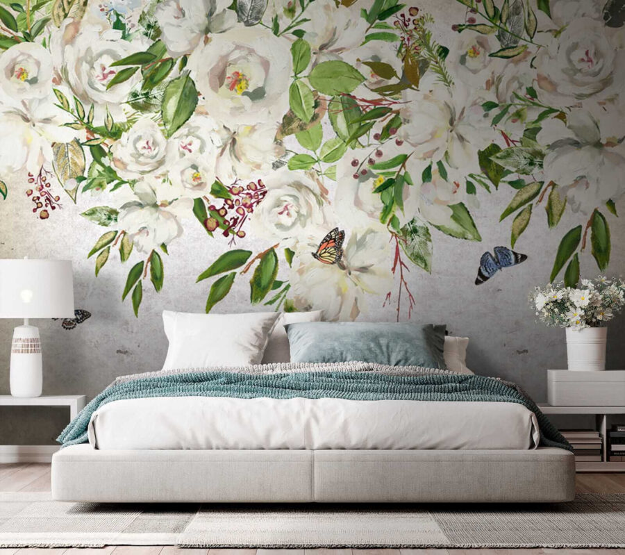 Transforma tu espacio con este encantador mural de flores blancas y mariposas revoloteando. Es como entrar en un jardín secreto sin los molestos insectos, ¡a menos que cuentes estas encantadoras mariposas! Imagínate esto: suaves pétalos y verdes vibrantes cubriendo tus paredes, trayendo una suave brisa de naturaleza a tu hogar. Este mural susurra tranquilidad, perfecto para un rincón de lectura acogedor o un dormitorio sereno. Imagina acurrucarte con un buen libro, rodeado de la atmósfera relajante de esta obra de arte. No es solo decoración, ¡es una experiencia que espera florecer! Deja que tus paredes cuenten una historia.