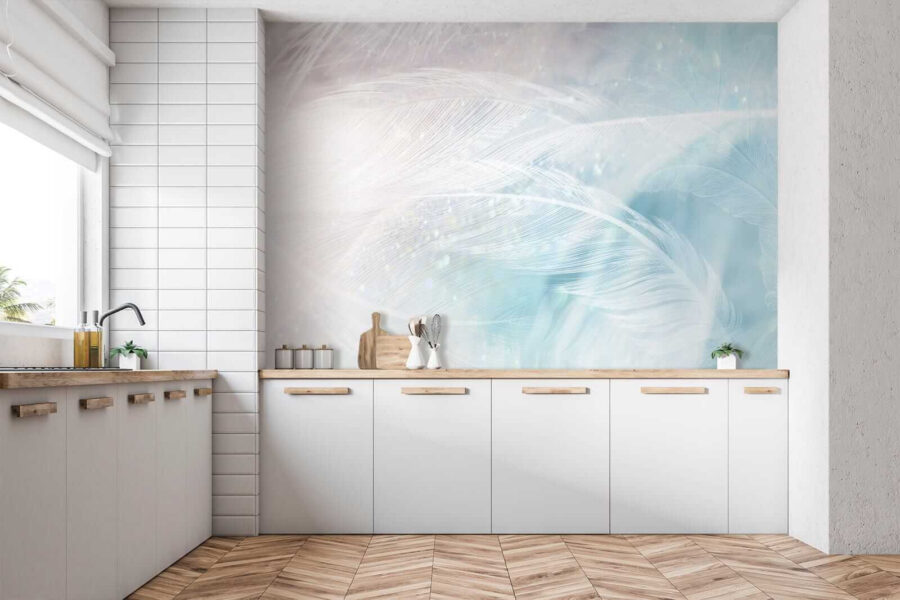 Conozca su nuevo mural de pared favorito: “Delicadas plumas sobre fondo azul suave”. Imagínese de pie en su salón, bañado por las vibraciones tranquilas y serenas de este precioso estampado. Las plumas, tan tiernas y tenues, parecen flotar en la pared. Tiene algo mágico, como un suave susurro de la naturaleza que envuelve tu habitación. No es sólo decoración, es una experiencia. Imagínatelo: una perezosa tarde de domingo, acurrucado con un libro, y este mural añade el toque perfecto de paz y elegancia a tu espacio.