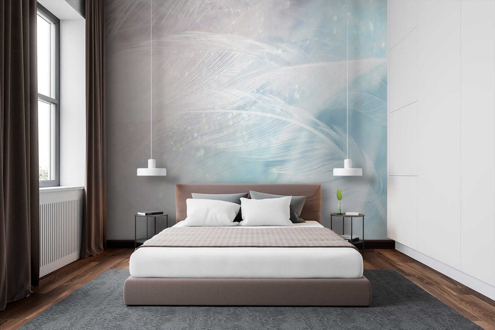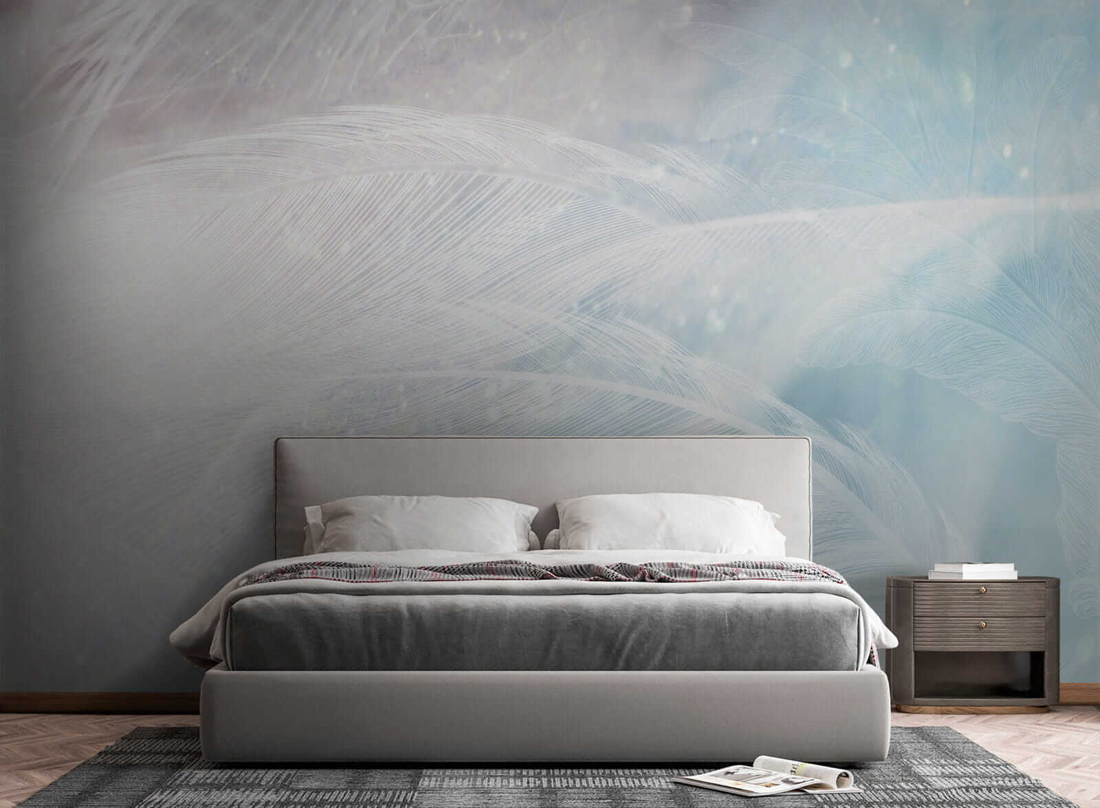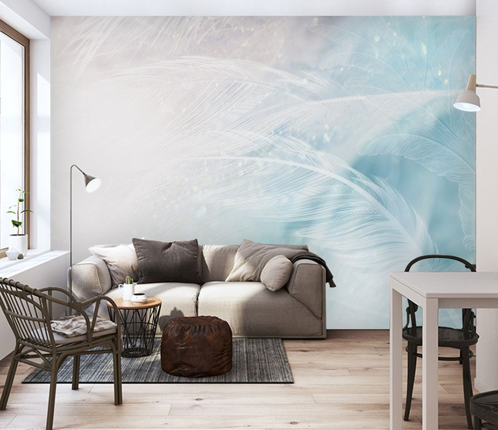 Conozca su nuevo mural de pared favorito: “Delicadas plumas sobre fondo azul suave”. Imagínese de pie en su salón, bañado por las vibraciones tranquilas y serenas de este precioso estampado. Las plumas, tan tiernas y tenues, parecen flotar en la pared. Tiene algo mágico, como un suave susurro de la naturaleza que envuelve tu habitación. No es sólo decoración, es una experiencia. Imagínatelo: una perezosa tarde de domingo, acurrucado con un libro, y este mural añade el toque perfecto de paz y elegancia a tu espacio.