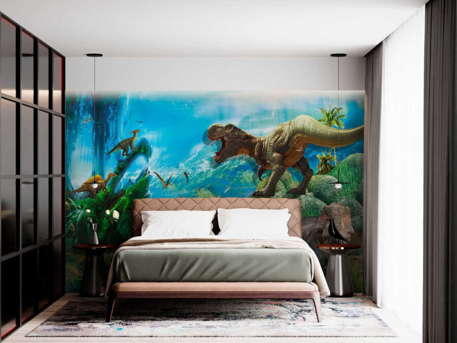 Imagínese entrar en un mundo prehistórico cada vez que entre en su habitación. Este mural “Dinosaurio con dientes afilados” es una vibrante explosión del pasado, perfecta para los niños amantes de los dinosaurios o para cualquiera que sienta una profunda conexión con estas magníficas criaturas. Los colores son increíbles, con verdes exuberantes y azules celestes que casi te hacen oír el susurro de la selva… o el rugido de un T. Rex en la distancia. Es como tu propio Parque Jurásico, ¡sin riesgos! En serio, instalar este mural puede ser la solución perfecta para despertar la imaginación y añadir un toque divertido y llamativo a cualquier espacio. Perfecto para el dormitorio de un niño o para una sala de estar lúdica, es más que una simple decoración: ¡es una aventura a punto de suceder!