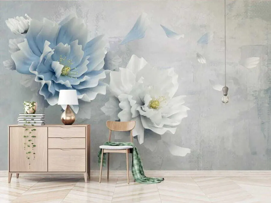 Transformar tu espacio es mucho más fácil con este mural de elegantes flores en tonos pastel. Imagina estas delicadas flores adornando tus paredes, aportando un ambiente suave y soñador a cualquier habitación. Los colores suaves crean una atmósfera calmante y refrescante, perfecta para acurrucarse con un libro o recibir a los amigos. Además, ¿esos pétalos revoloteando? Añaden un toque de fantasía, como si la primavera hubiera decidido quedarse para siempre. Es como tener un jardín secreto en casa: ¿quién no sería un poco más feliz rodeado de estas bellezas? Perfecto para cualquiera que desee un soplo de aire fresco en su hogar.