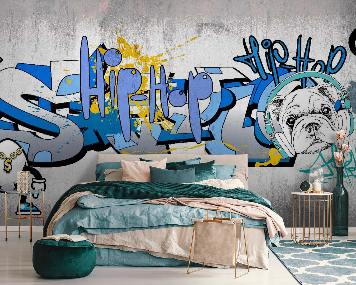 Imagínatelo en una oficina en casa o iluminando la habitación de un adolescente; de repente, la habitación parece más viva, casi hablándote con su estilo creativo. Seguro que dará que hablar en todas las reuniones. Los elementos hip-hop, como el simpático bulldog con auriculares y los extravagantes personajes, aportan a este mural un encanto caprichoso y un poco de fanfarronería divertida. Verás esos estallidos de color y sonreirás, manteniendo ese espíritu juvenil y dinámico en todo momento.
