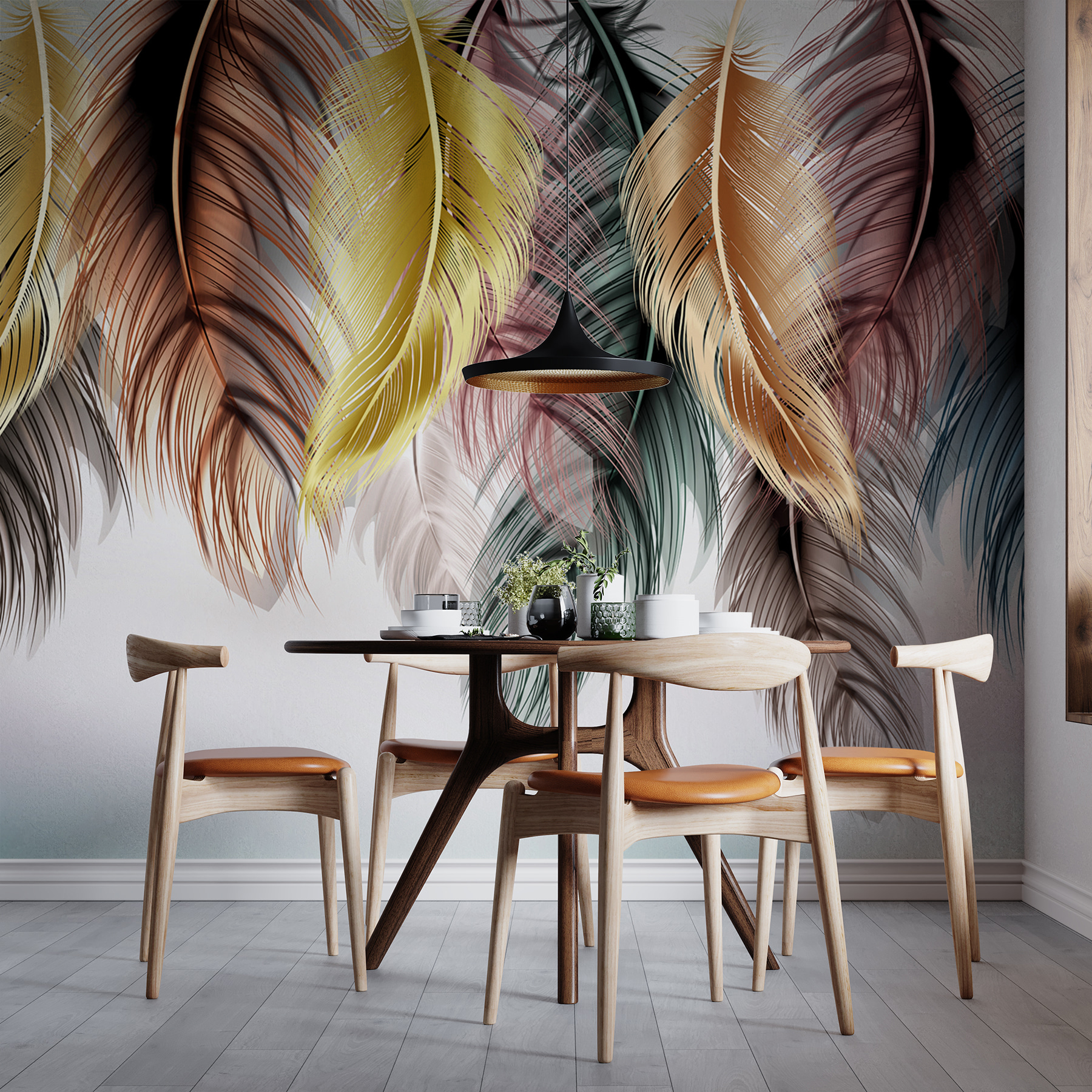 ¿Has visto estos murales “Plumas en tonos vibrantes e impactantes”? Son realmente preciosos. Imagina que entras en tu salón o dormitorio y te recibe una cascada de plumas de colores: es como una pequeña obra de arte en la pared, que atrae todas las miradas.