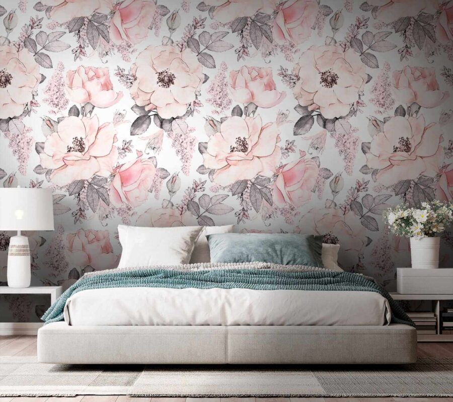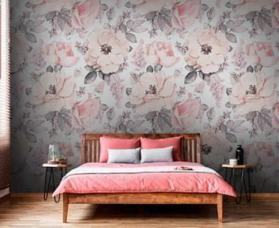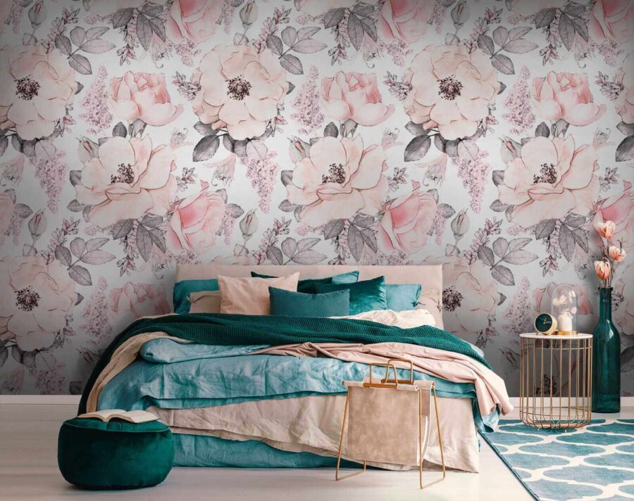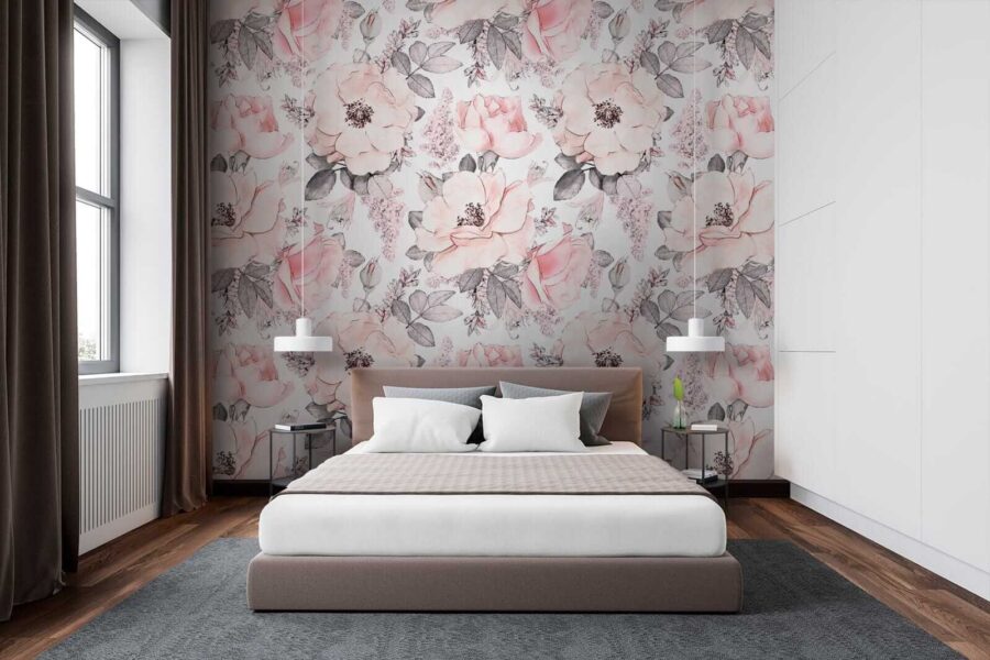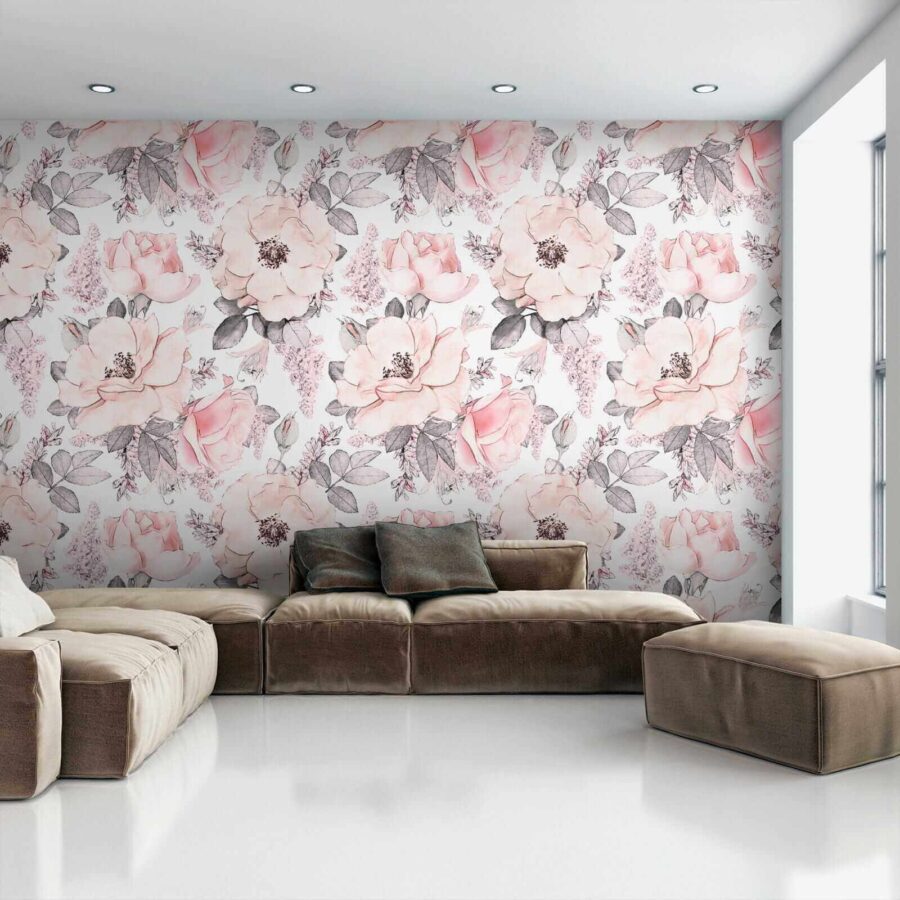 Transforma una pared aburrida en un paraíso floreciente con este impresionante mural, con un encantador diseño de flores y hojas. Imagínate tomando una taza de café rodeado de estas suaves flores rosas. En serio, ¿quién necesita un jardín cuando tienes esto?