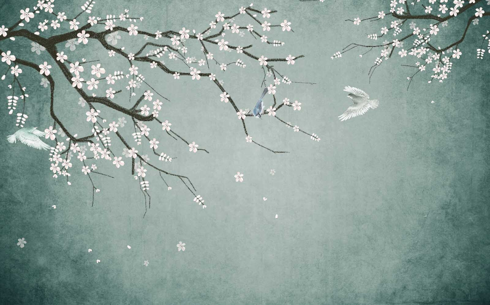 Fotomurales Pájaros y flores en serena armonía. (SKU: u35808)
