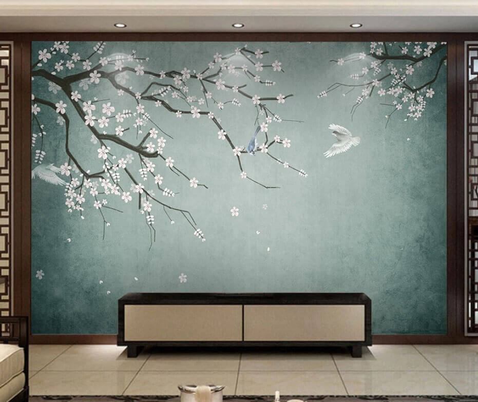 Fotomurales Pájaros y flores en serena armonía Fotomurales Pájaros y flores en serena armonía