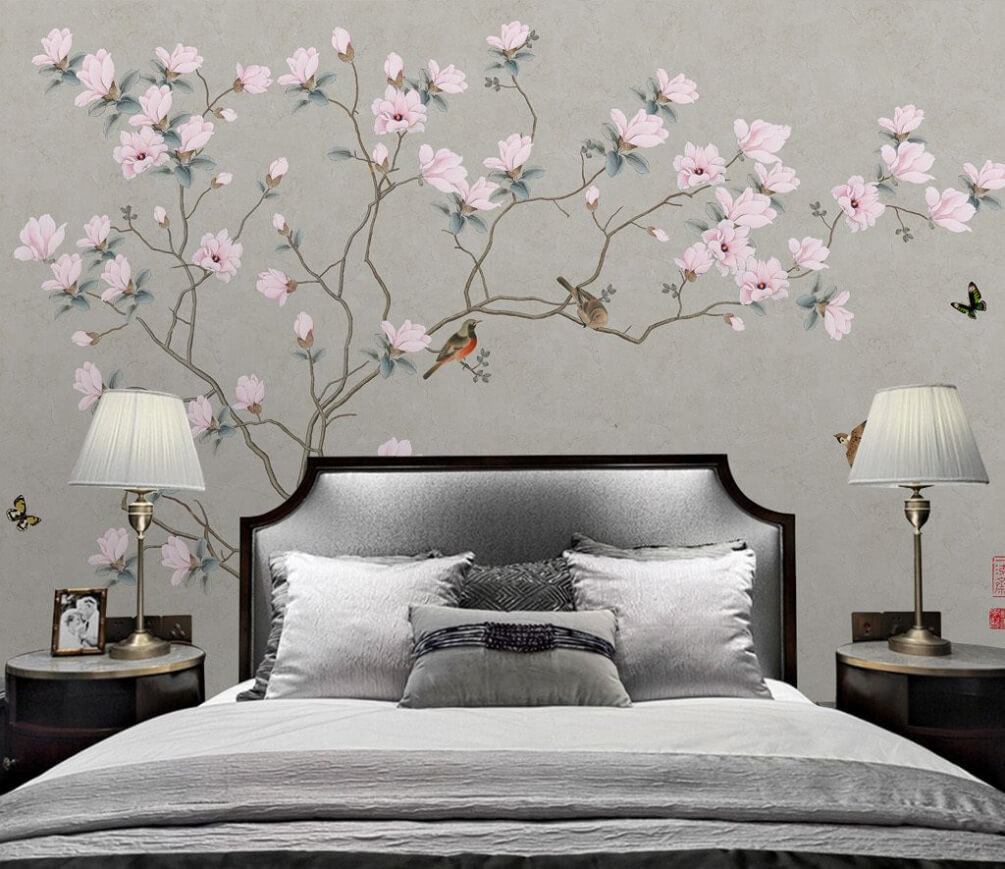 Imagínese esto: entra en su salón y ahí está: el mural “Pájaro volando en el cielo”. Es como una instantánea poética de la naturaleza en la pared. Las delicadas flores rosas, en plena floración, y los pájaros, ¡tan libres, tan vivos! No es sólo un mural, es una pequeña escapada a la serenidad.
