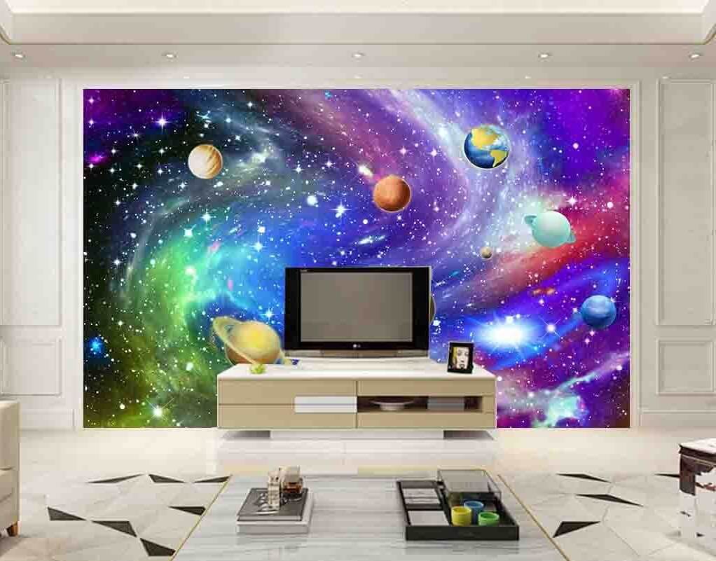 Transforme su espacio en un país de las maravillas cósmico con este vibrante mural de pared con planetas arremolinándose en una galaxia de colores. Imagínese sentado en un rincón acogedor, tomando su bebida favorita mientras admira los azules, verdes y morados de ensueño que bailan por la pared. Es como tener tu propio trozo del universo en casa. Los planetas estallan con un encanto juguetón, y cada uno de ellos invita a pensar en mundos lejanos y aventuras aún por explorar. Perfecto para una habitación infantil o para cualquier persona joven de corazón, este mural añade un toque de fantasía y asombro. ¿Quién no se sentiría inspirado mirando las estrellas? Una forma sencilla de despertar la curiosidad y despertar la imaginación.
