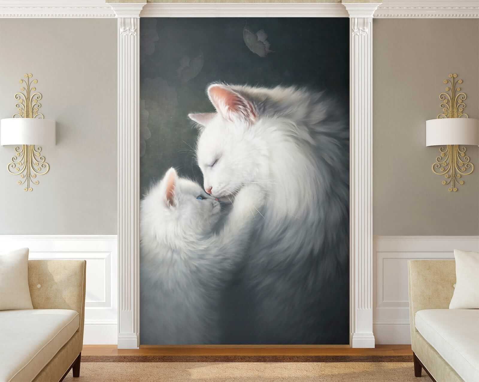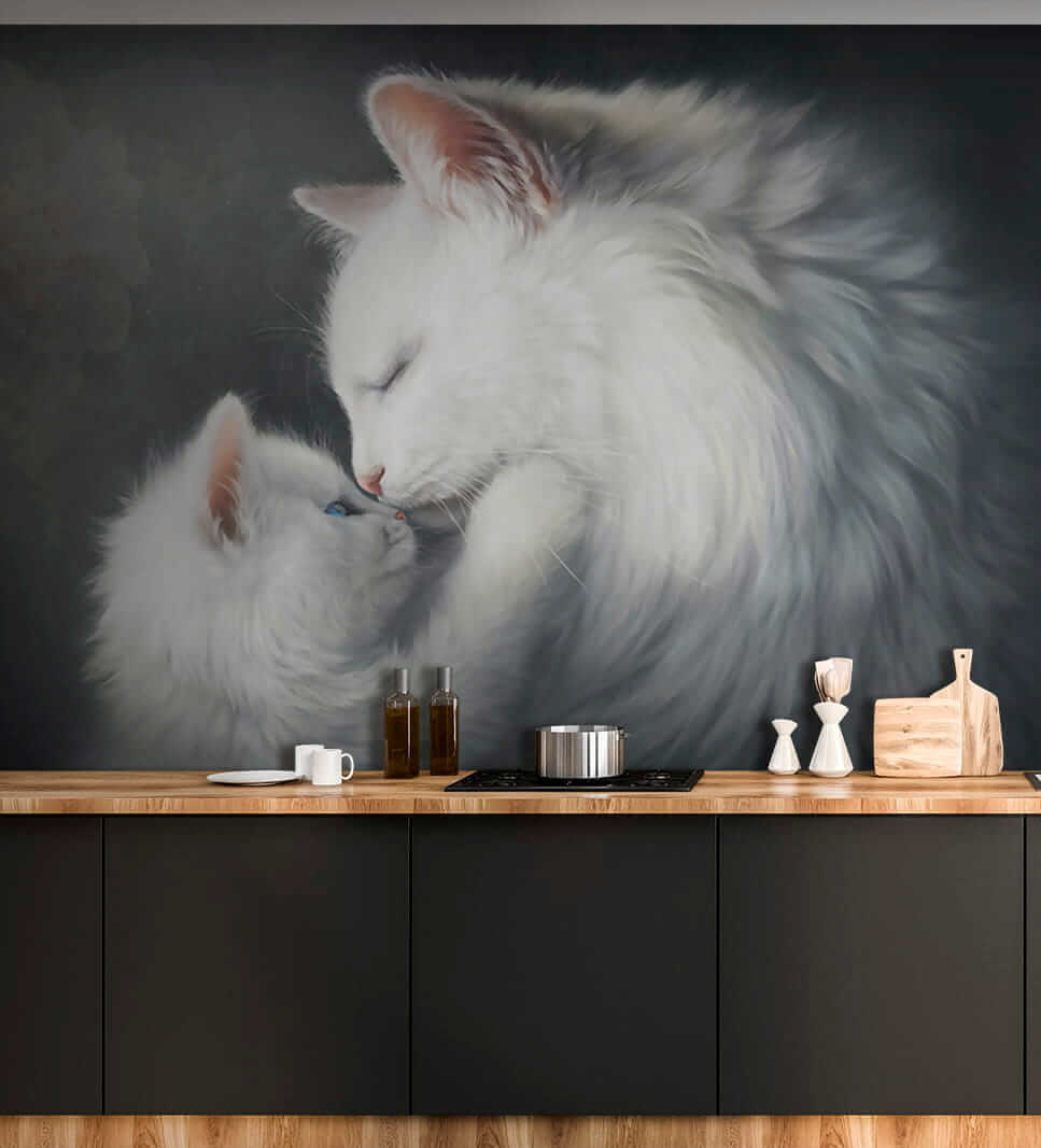 Fíjate en estos dos adorables peluches. Este mural de pared “Feline Affection at its Finest” derretirá corazones. Perfecto para cualquier habitación que necesite un toque de calidez y fantasía, ya sea la habitación de un niño, un rincón de lectura acogedor o incluso el salón. Imagina despertarte con este adorable dúo de mamá y gatito cada día… ¡un subidón de ánimo instantáneo! Y oye, ¿quién puede resistirse a esas suaves pieles y tiernos acurrucamientos, verdad?