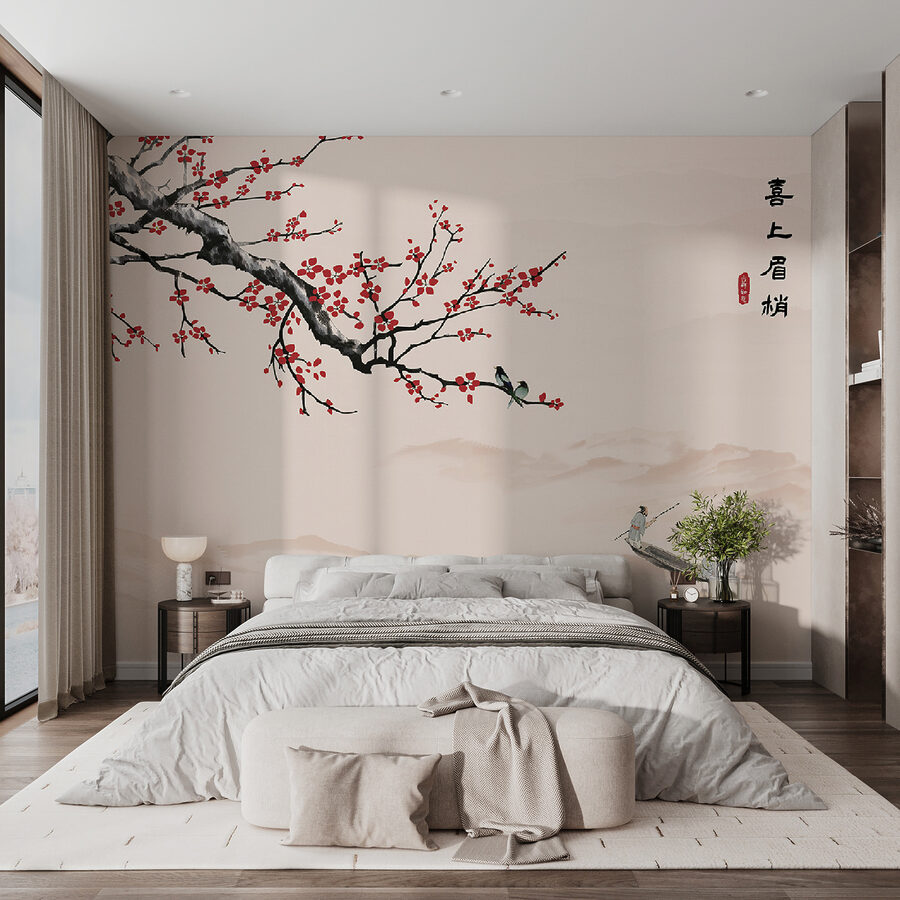 Decore su espacio con este mural de pared “Rama de árbol con flores rojas”. Imagínese despertarse así: elegantes ramas que se extienden por la pared, repletas de brillantes flores rojas. Es como si un toque de naturaleza hubiera besado tu habitación mientras dormías. Perfecto para salones, dormitorios o incluso para un acogedor rincón de lectura.