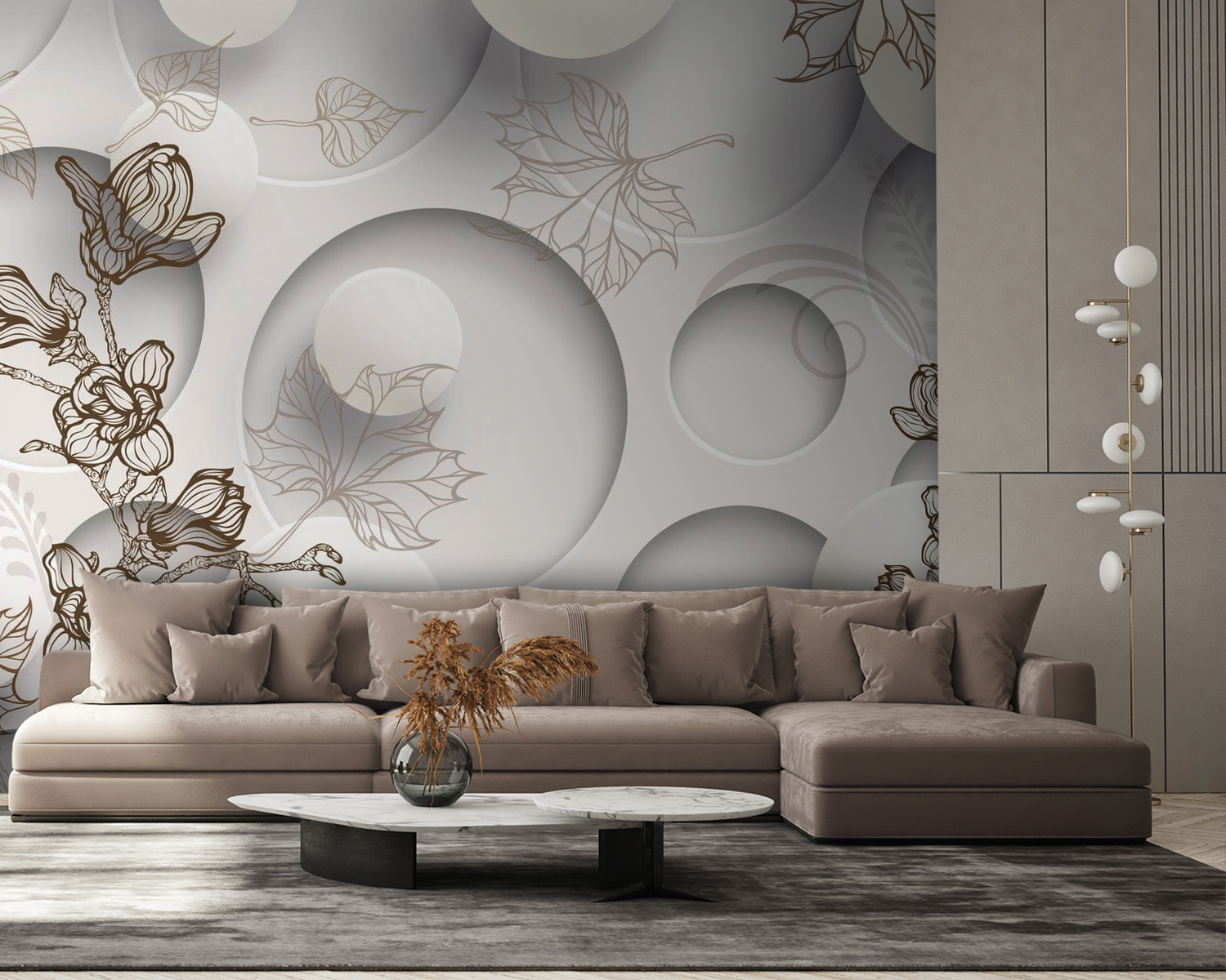Transforme su espacio con este caprichoso mural de pared que combina maravillosamente círculos y diseños florales. Es como traer una suave brisa de jardín al interior, sin el polen ni los estornudos. Imagínese despertarse cada día rodeado de estas formas suaves y fluidas, que le recuerdan a las tardes perezosas en un parque soleado. Perfecto para añadir un toque de personalidad a cualquier habitación, hace que la decoración de la pared sea fresca y alegre. Tanto si se trata de un rincón acogedor como de una vibrante sala de estar, este mural despierta la alegría y la conversación, y seguro que hará sonreír a sus invitados. Deje que las flores y los círculos bailen en sus paredes.