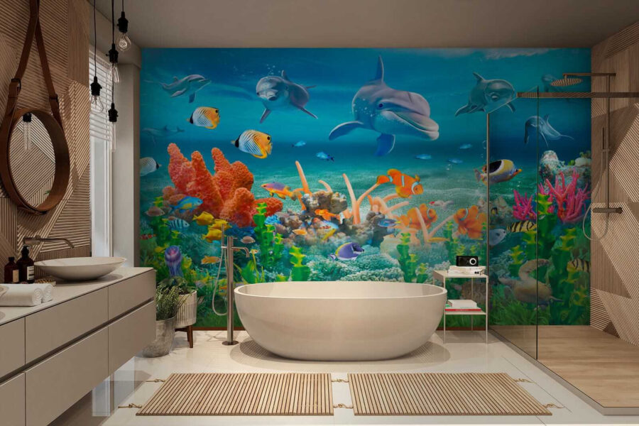 Imagina abrir los ojos cada mañana con una explosión de alegría: ¡este vibrante mural “Delfín nadando en el agua” puede hacer exactamente eso! Perfecto para la habitación de los niños o para tu extravagante salón, está lleno de juguetones delfines y coloridos amigos del mar. Las ilustraciones son tan vivas que casi esperas que esos alegres delfines salten de la pared. Es como tener una ventana a un paraíso submarino, sin la arena en los zapatos. Este mural aporta un toque de felicidad junto al mar y un toque de fantasía a tu espacio. Sumérgete en un mundo de imaginación y observa cómo la habitación se ilumina con sonrisas y carcajadas. No es sólo decoración, es una experiencia.