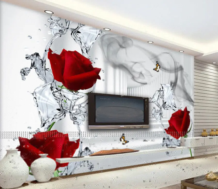 1 valoración en Fotomurales Rosas rojas flotando con mariposas
