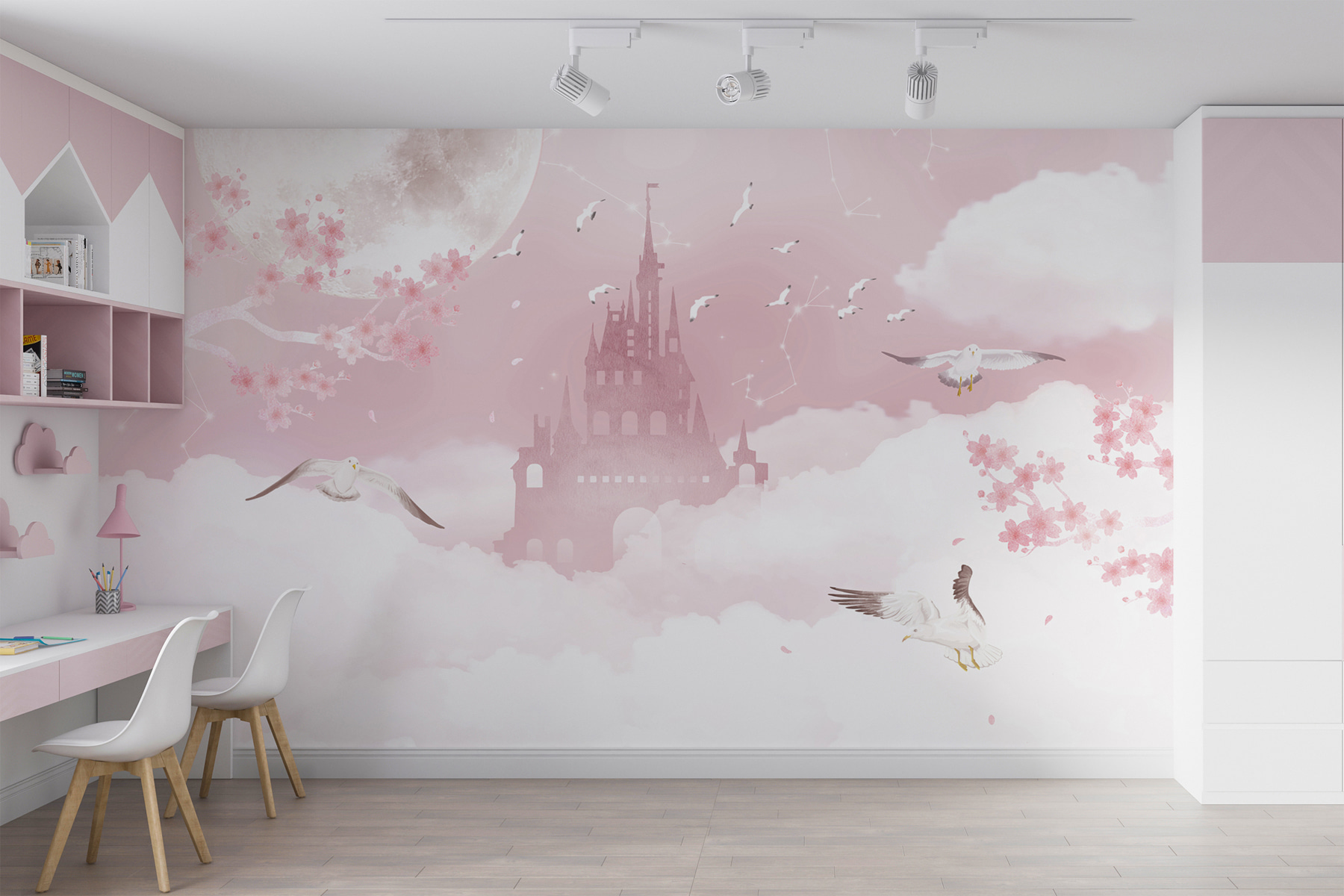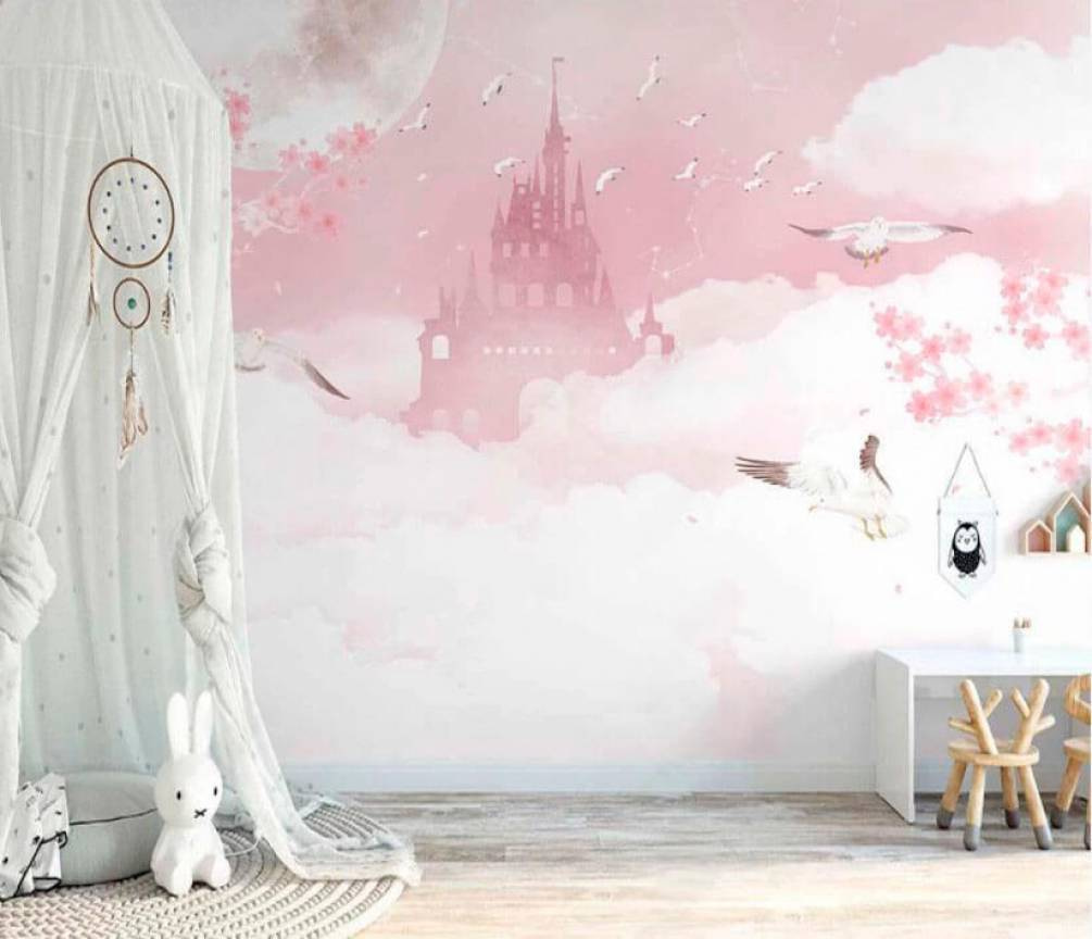 Echa un vistazo a este “Mural Pájaro blanco volando en el cielo” de ensueño: ¡es como entrar en una fantasía caprichosa! Perfecto para habitaciones infantiles, sobre todo si a tu hijo le encantan los cuentos de hadas y las escenas encantadoras. Imagínatelo: nubes suaves y esponjosas, pájaros que vuelan con libertad, un castillo mágico de fondo y delicadas flores de cerezo… Es como si un cuento cobrara vida.