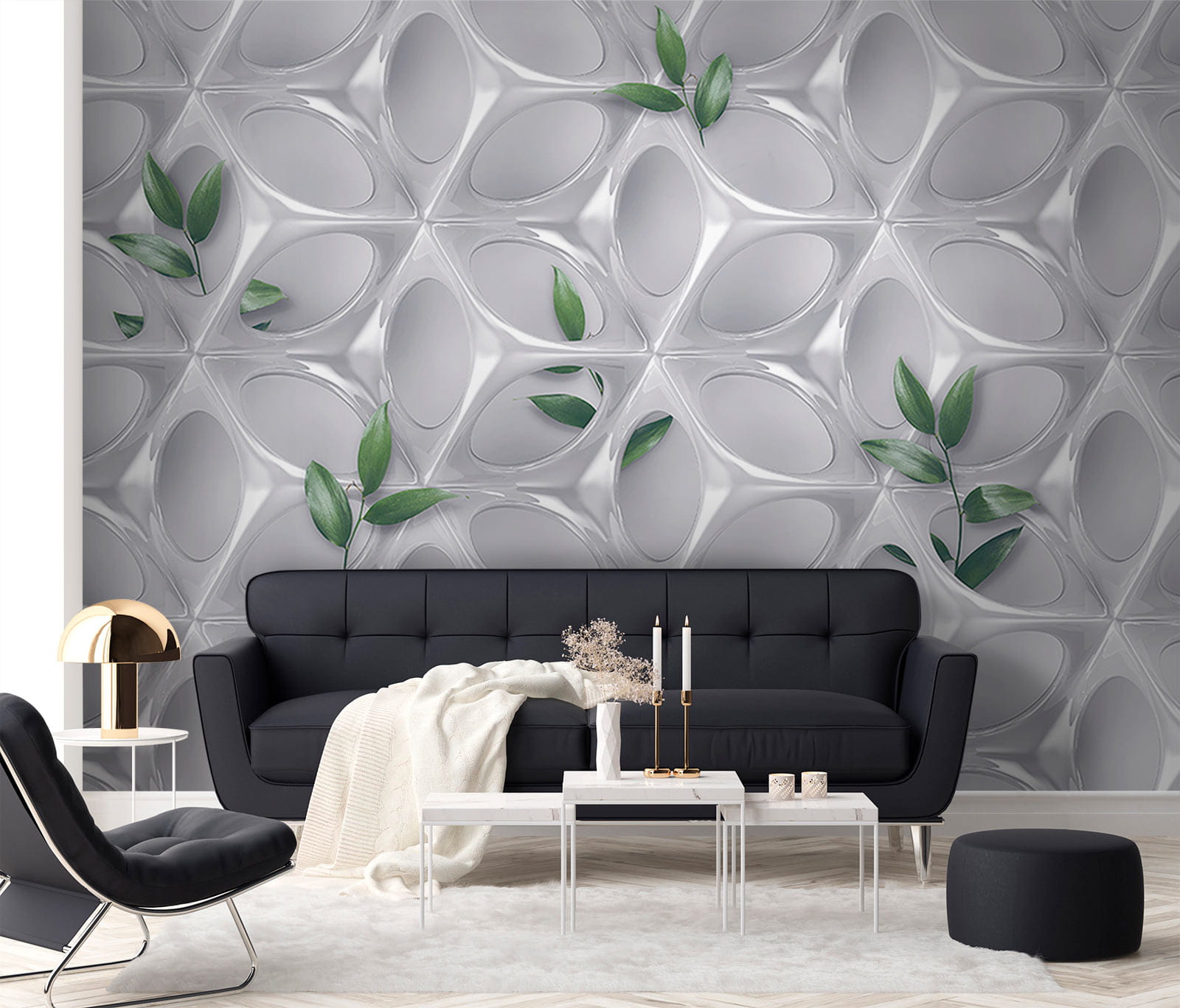 Transform your space into a lush retreat with the “Wall Murals White Wall with Green Leaves.” This mural brings the outdoors in, wrapping your walls with soft, stylish greenery that adds a fresh vibe to any room. Imagine sipping coffee in a sunlit corner, feeling like you’ve got a little slice of nature right at home. Perfect for creating a calming atmosphere, it’s like having a peaceful garden—minus the need for watering or weeding! With its modern flair and vibrant leaves peeking through, it’s a delightful conversation starter, just waiting to impress your friends.