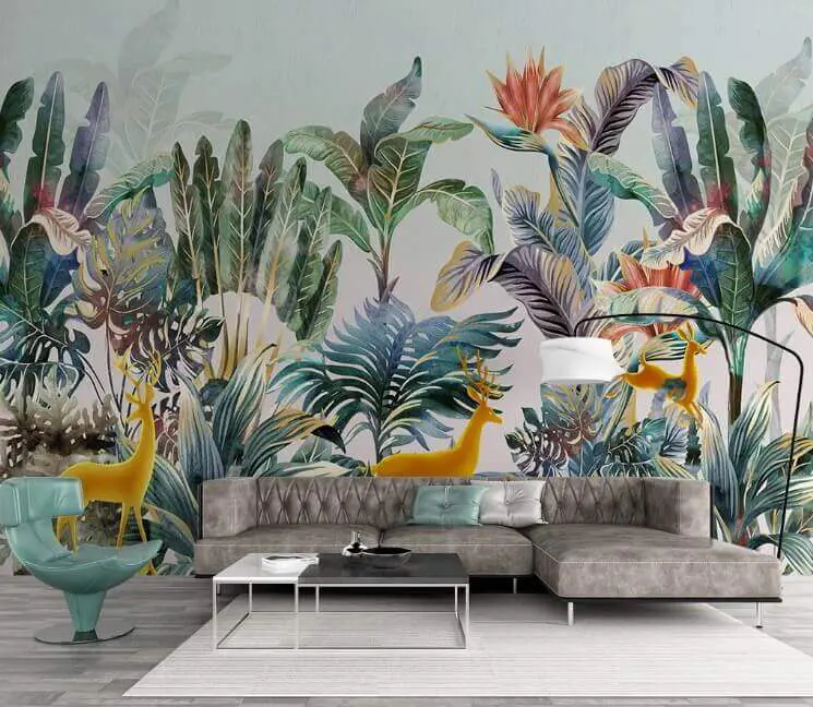 Transforme su espacio en una vibrante jungla con este asombroso mural de pared que presenta un animado grupo de plantas y animales juguetones. Imagínese que entra en su habitación y siente la brisa del aire tropical, o tal vez simplemente una sensación de calma. La exuberante vegetación y las alegres criaturitas invitan a un poco de naturaleza en el interior, haciendo que cada día parezca una mini-vacación. Es como tener un jardín secreto en la pared, perfecto para esos días en los que se necesita un poco de evasión. Este mural no sólo alegra tu espacio, sino que también provoca sonrisas y charlas sobre la belleza de la naturaleza. Deje que sus paredes hablen por usted.