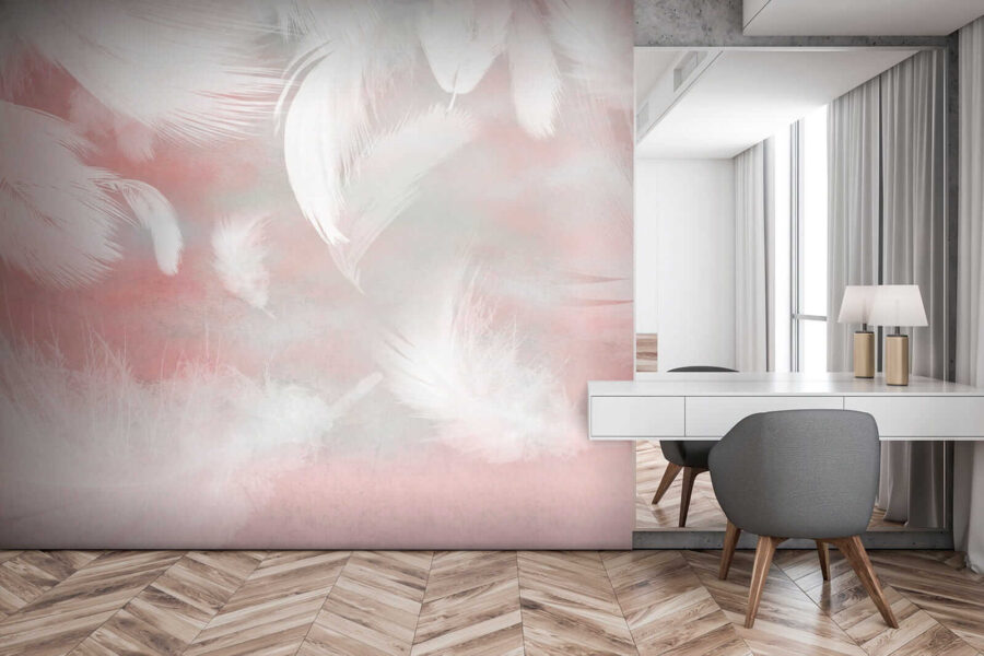 Imagine transformar su espacio en un santuario de ensueño con estos murales de pared “Plumas blancas sobre fondo rosa”. En serio, ¡este mural es como una suave brisa de elegancia que recorre su habitación! ¿El suave tono rosa combinado con delicadas plumas blancas? Pura magia. Es como flotar en las nubes sin salir de casa.
