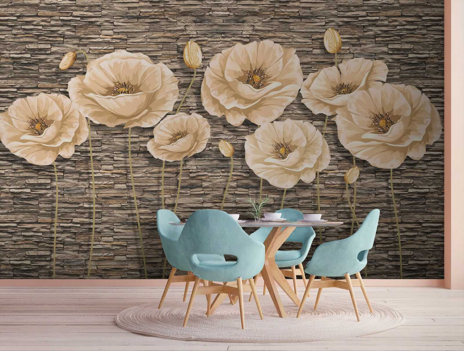 Alegre cualquier espacio con el encantador mural “Amapolas en una pared con textura”. Imagínese entrar en una habitación donde las suaves amapolas parecen mecerse suavemente con una brisa cálida, trayendo el exterior al interior. Los tonos neutros de estas flores combinan a la perfección con un fondo que imita la piedra rústica. Es como tener un pequeño jardín en el salón, perfecto para quienes desean un toque de naturaleza sin ensuciar. Imagínese recibiendo a sus amigos; se sentirán atraídos por esas preciosas flores, e incluso le preguntarán si se ha convertido en un maestro jardinero de la noche a la mañana. Este mural se siente vivo, vigorizando cualquier habitación con un ambiente elegante y sin esfuerzo. Transforma tus paredes en una escapada serena, ¿qué hay mejor que eso?