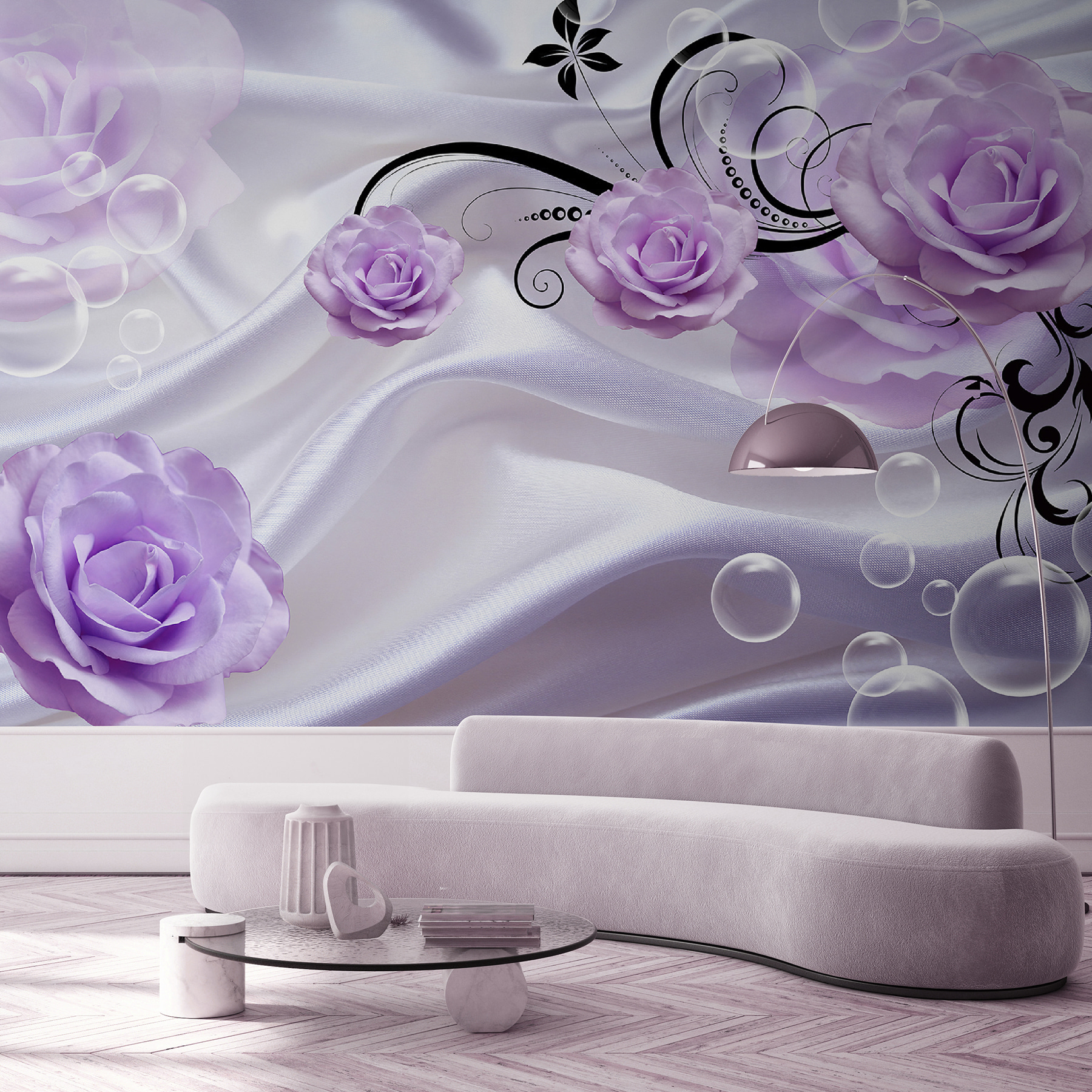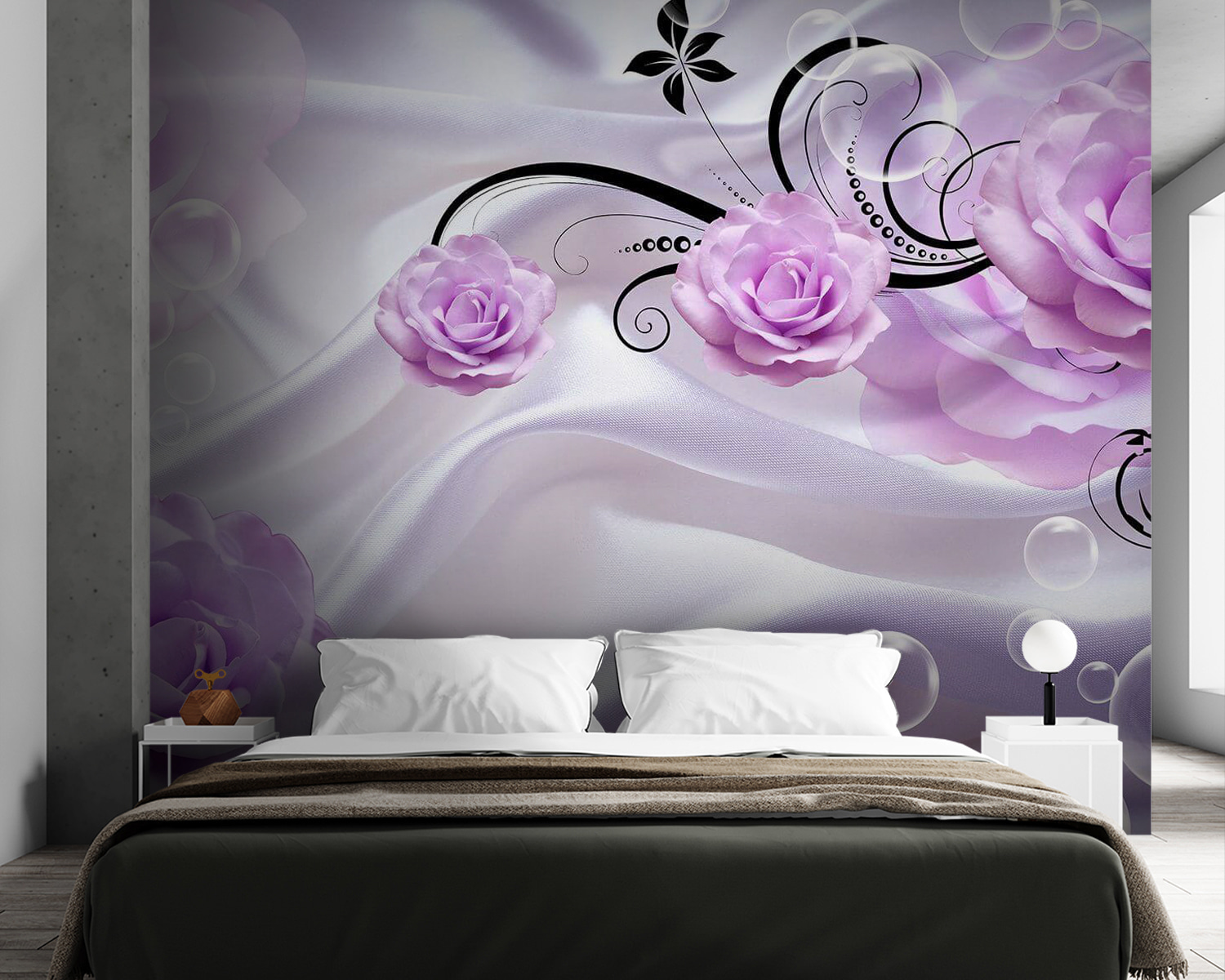 Transforma una pared lisa en una escapada de ensueño con el encantador mural Rosas moradas sobre fondo de tela sedosa. Imagínatelo: atractivas flores lilas cayendo suavemente en cascada sobre un fondo suave, añadiendo calidez y romanticismo a cualquier habitación. Es como tener un jardín secreto dentro de casa, donde cada mirada es como un soplo de aire fresco.