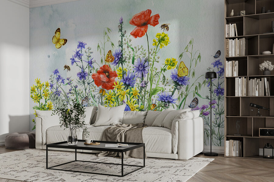 Este mural no es sólo decoración, sino que transforma por completo el ambiente de un espacio. Piense en un domingo por la mañana con un café en la mano, disfrutando de las coloridas flores y las juguetonas mariposas: pura felicidad. Con su encanto de acuarela, es perfecto para cualquier habitación que necesite un toque de la magia de la naturaleza. Puede que incluso sueñes con estar en un prado con cada mirada. Dale a tus paredes una historia que contar. 🌸🦋
