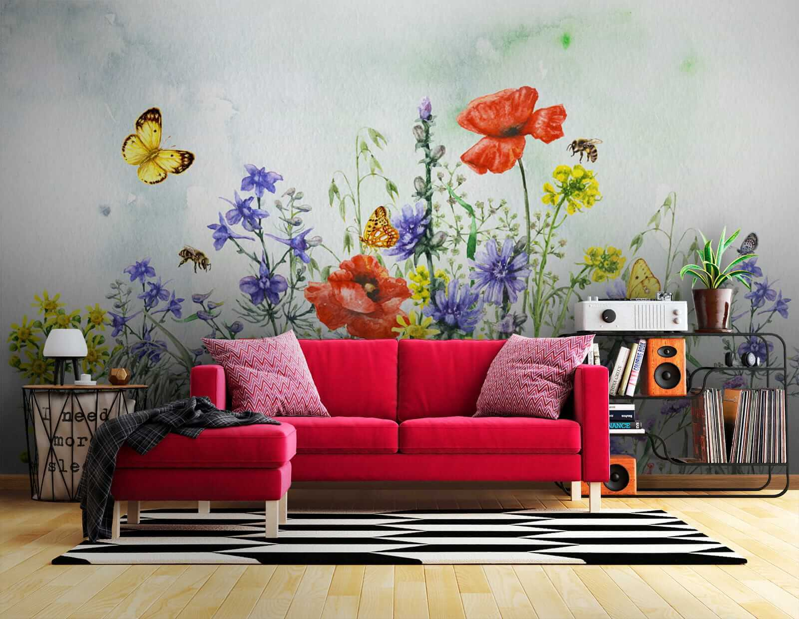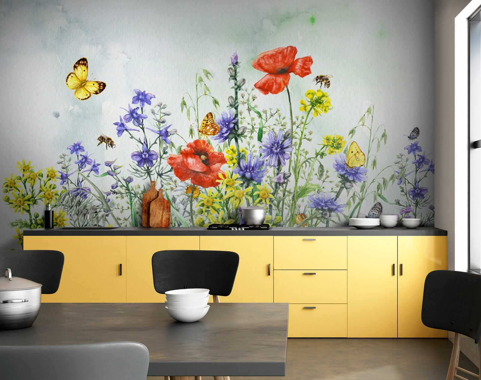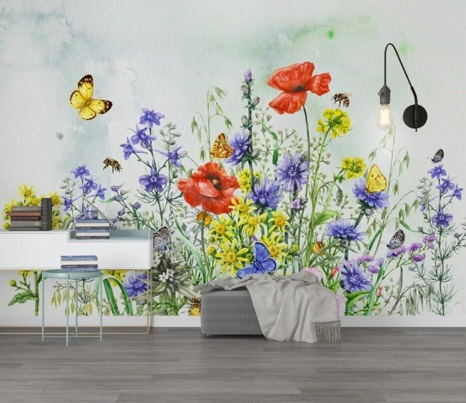 Este mural no es sólo decoración, sino que transforma por completo el ambiente de un espacio. Piense en un domingo por la mañana con un café en la mano, disfrutando de las coloridas flores y las juguetonas mariposas: pura felicidad. Con su encanto de acuarela, es perfecto para cualquier habitación que necesite un toque de la magia de la naturaleza. Puede que incluso sueñes con estar en un prado con cada mirada. Dale a tus paredes una historia que contar. 🌸🦋