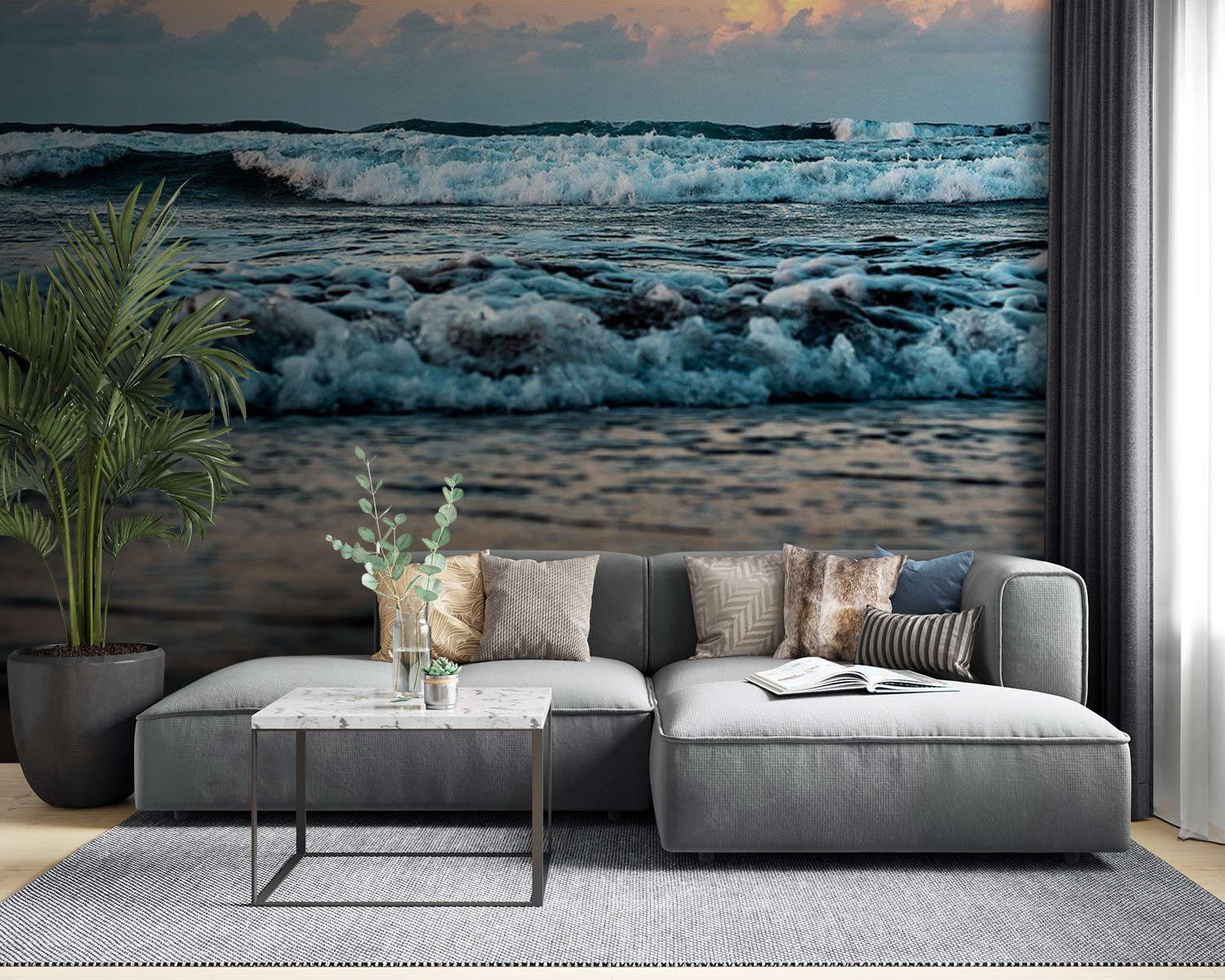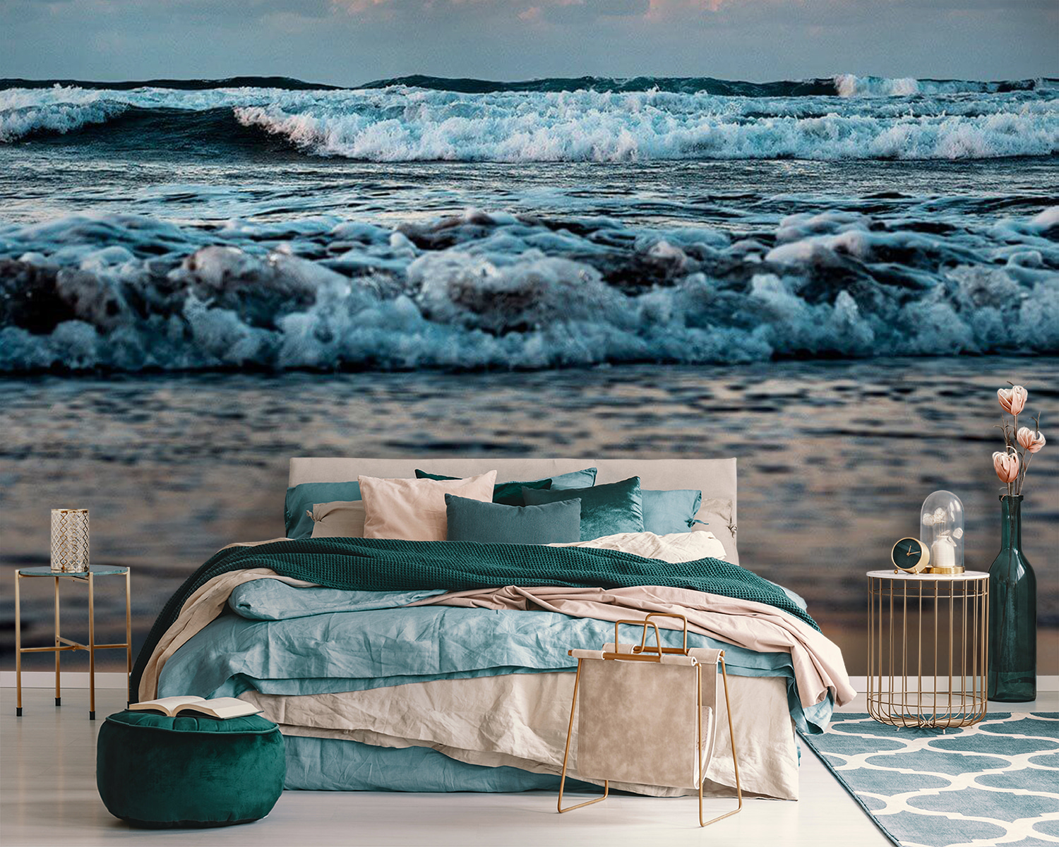 ¿Alguna vez ha soñado despierto con despertarse con el sonido de las suaves olas y el cielo al amanecer? Este mural, “Waves Dance Under a Sunrise Sky” (Las olas bailan bajo un cielo al amanecer), lleva ese ambiente costero de ensueño directamente a su espacio. Imagínese entrar en una habitación donde las olas parecen bailar con los colores del amanecer. No es sólo un efecto visual, es toda una sensación que captura la serenidad de la costa. Perfecto para cuando quieras sentirte siempre de vacaciones, aunque sea un lunes por la mañana. Colócalo en un salón o en un dormitorio y observa cómo transforma el espacio con su esencia tranquilizadora. Además, hay algo tan relajante en esos tonos pastel que se mezclan con las olas espumosas. Prepárate para escuchar los cumplidos… ¡y quizá alguna envidia!