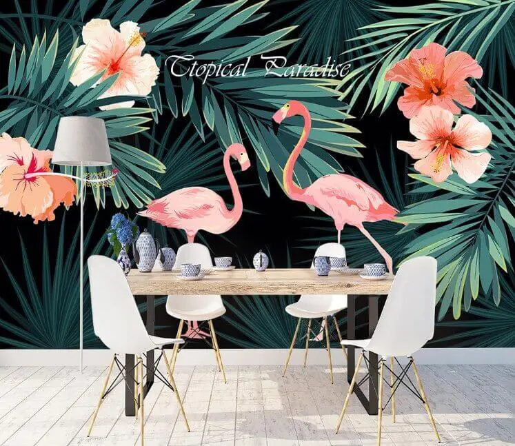 Ilumine un espacio con este encantador mural de pared que presenta un encantador dúo de flamencos rosas rodeados de vibrantes flores tropicales. Imagínese entrar en una habitación donde los vivos colores le transportan instantáneamente a un paraíso soleado, donde las preocupaciones se desvanecen como un cucurucho de helado en el calor. La exuberante vegetación casi susurra dulces palabras de la naturaleza, creando un ambiente acogedor perfecto para relajarse después de un largo día. Ya sea en un salón, en la habitación de un niño o incluso en un alegre despacho, este mural no sólo decora, sino que aporta un espíritu alegre que hará sonreír a cualquiera.