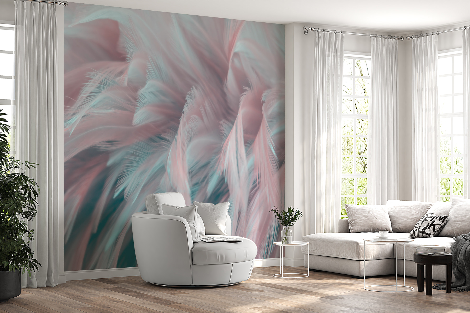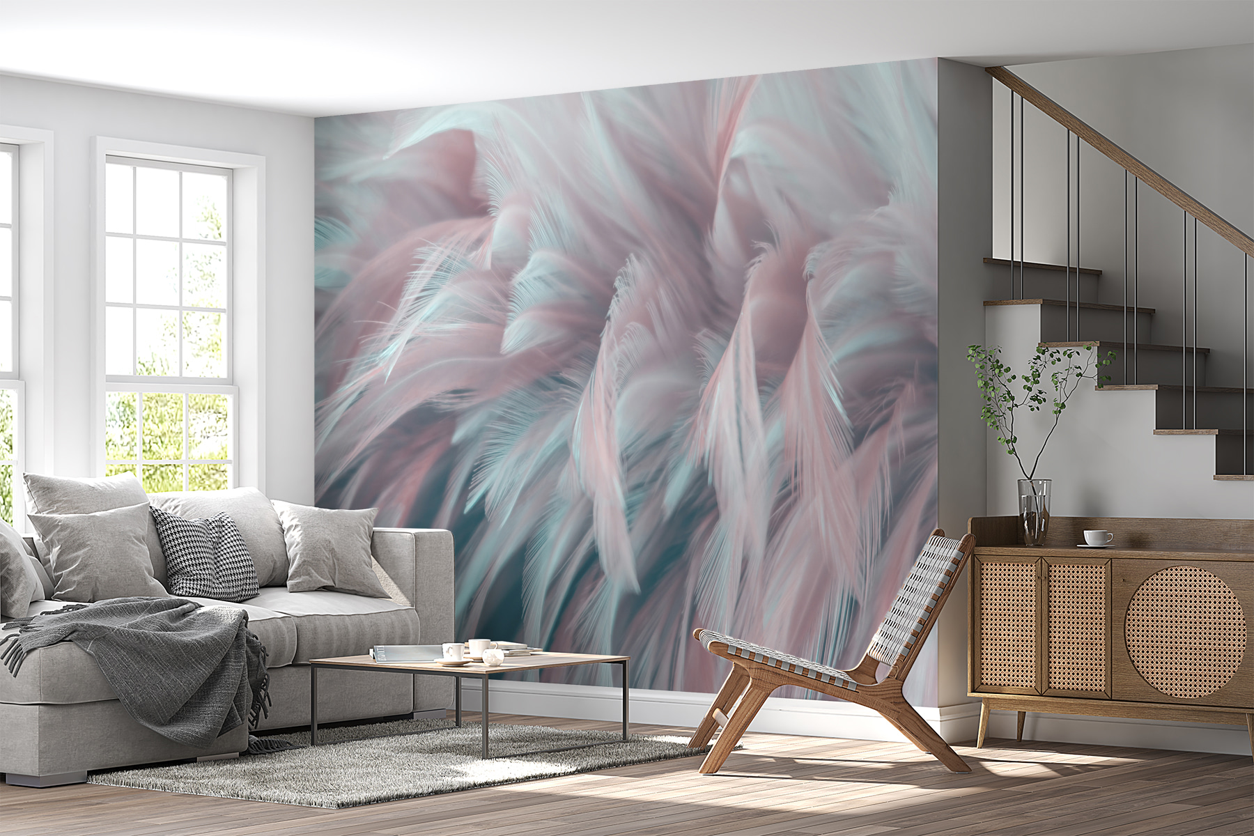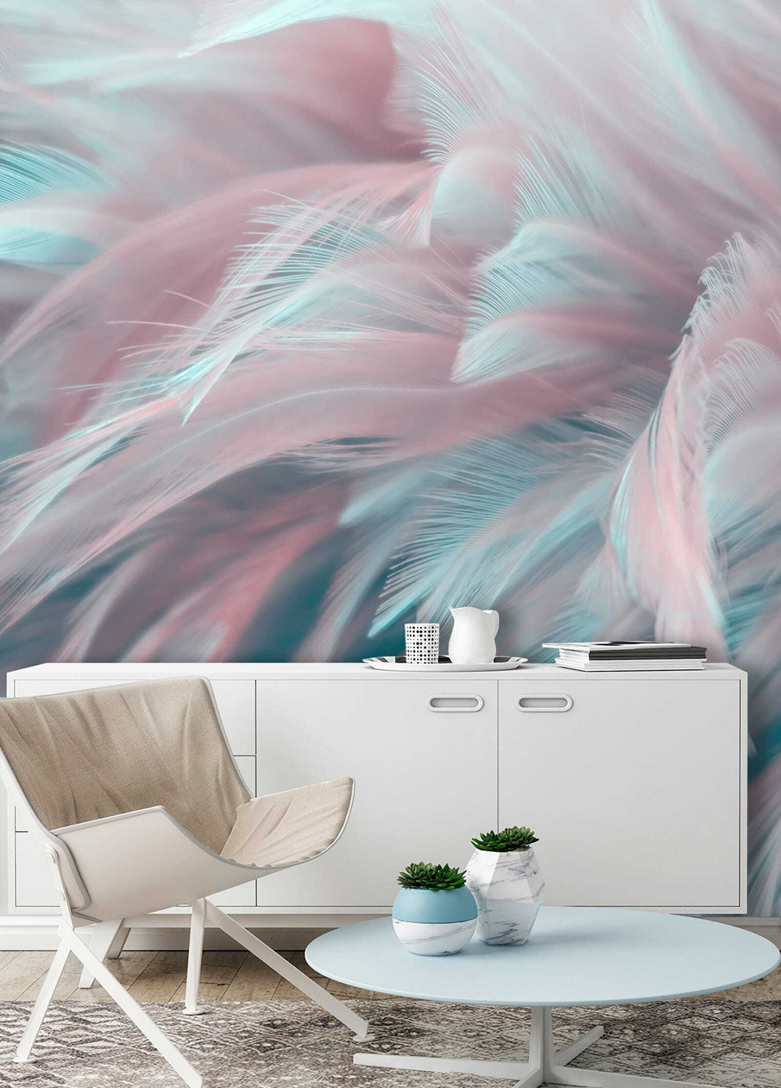 6 valoraciones en Fotomurales Delicadas plumas pastel en movimiento