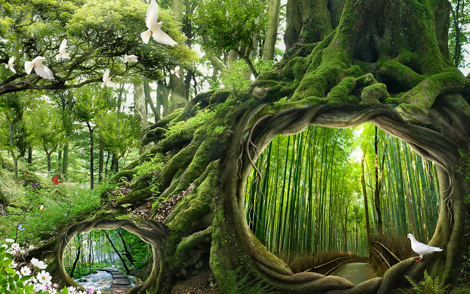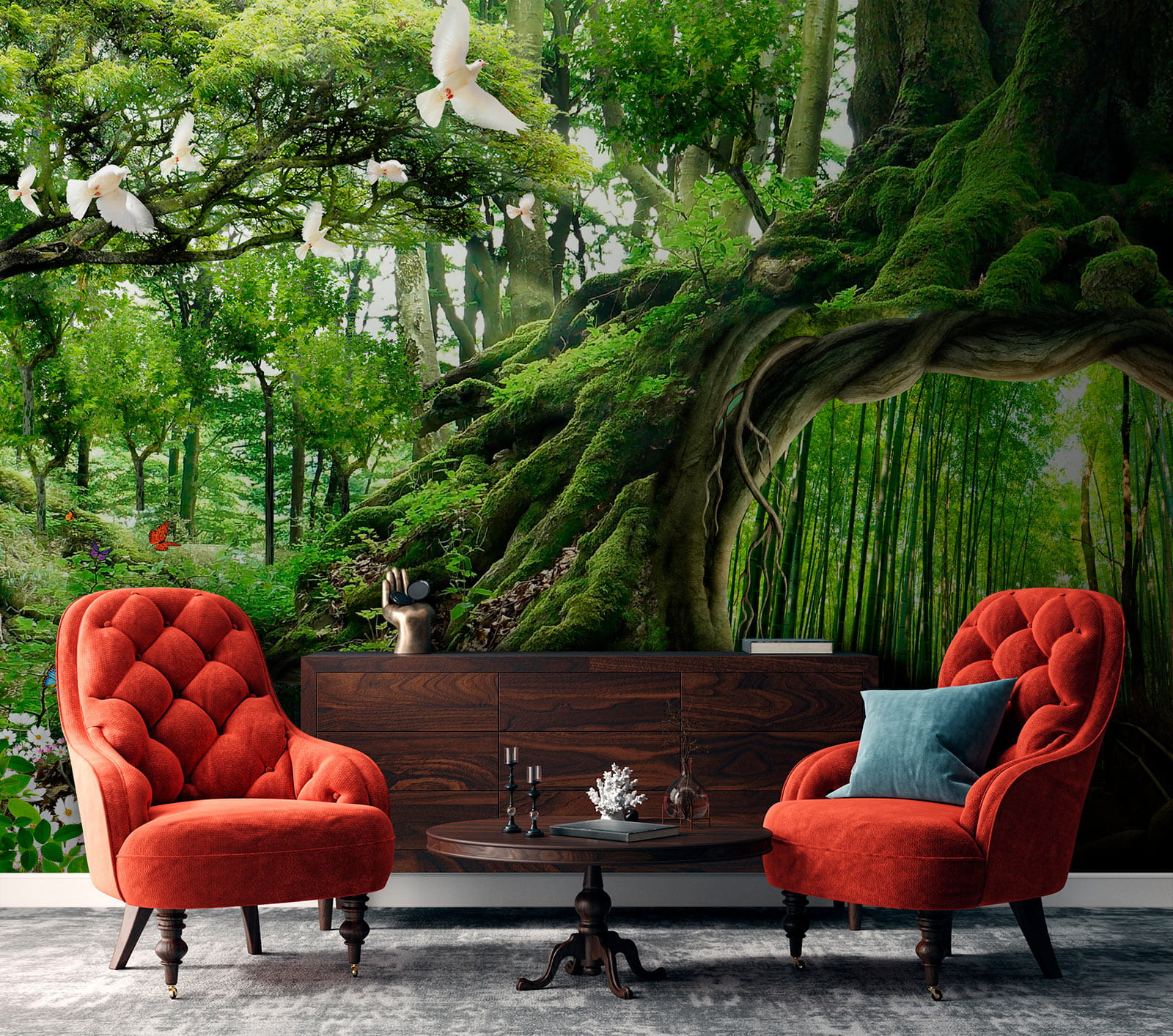 Transforma tu espacio en un acogedor refugio en el bosque con el «Mural de pared Árbol con un agujero en el centro». Imagina entrar en tu habitación y sentir que acabas de adentrarte en un bosque mágico. Este mural captura la esencia de la naturaleza, con verdes vibrantes y pequeños detalles caprichosos, como mariposas y palomas. El árbol, con su acogedor hueco, juega con la mente: ¡es como una puerta a otro mundo encantador! Perfecto para soñadores o cualquiera que necesite un poco de terapia natural. Piensa en él como un recordatorio diario para respirar y relajarte, trayendo el exterior al interior mientras sigues disfrutando de las comodidades del hogar. Es un papel pintado que susurra historias de aventura y tranquilidad, haciendo que cada mirada sea una pequeña escapada. ¿Cómo podría alguien resistirse?