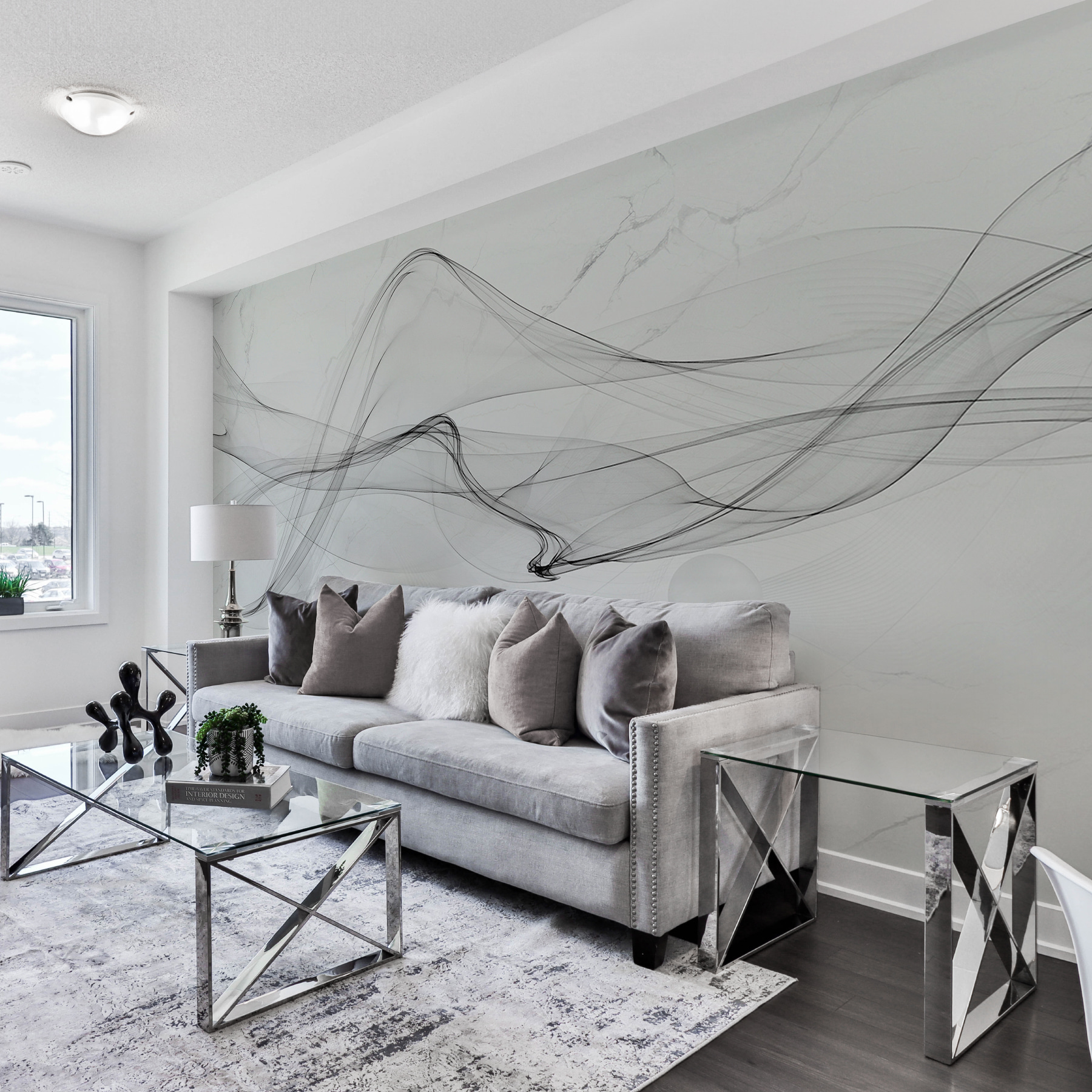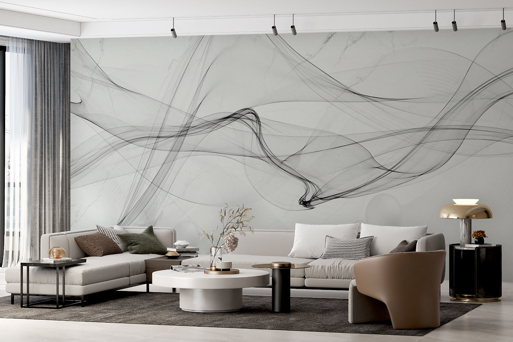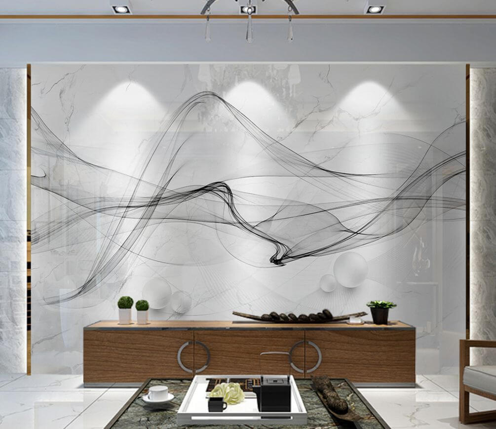 Imagínese esto en su salón: el mural de pared “Olas abstractas sobre mármol”. Líneas suaves y fluidas que casi parecen un delicado humo negro bailando sobre un elegante fondo de mármol. Es una de esas piezas que pueden transformar un espacio, haciéndolo sentir elegante y fresco sin esfuerzo. Imagina que te acurrucas con un libro mientras los remolinos roban tu atención de vez en cuando… es como tener una obra de arte moderno en casa. Este es un tema de conversación, créeme. Perfecto para los amantes del minimalismo con un toque de fantasía.
