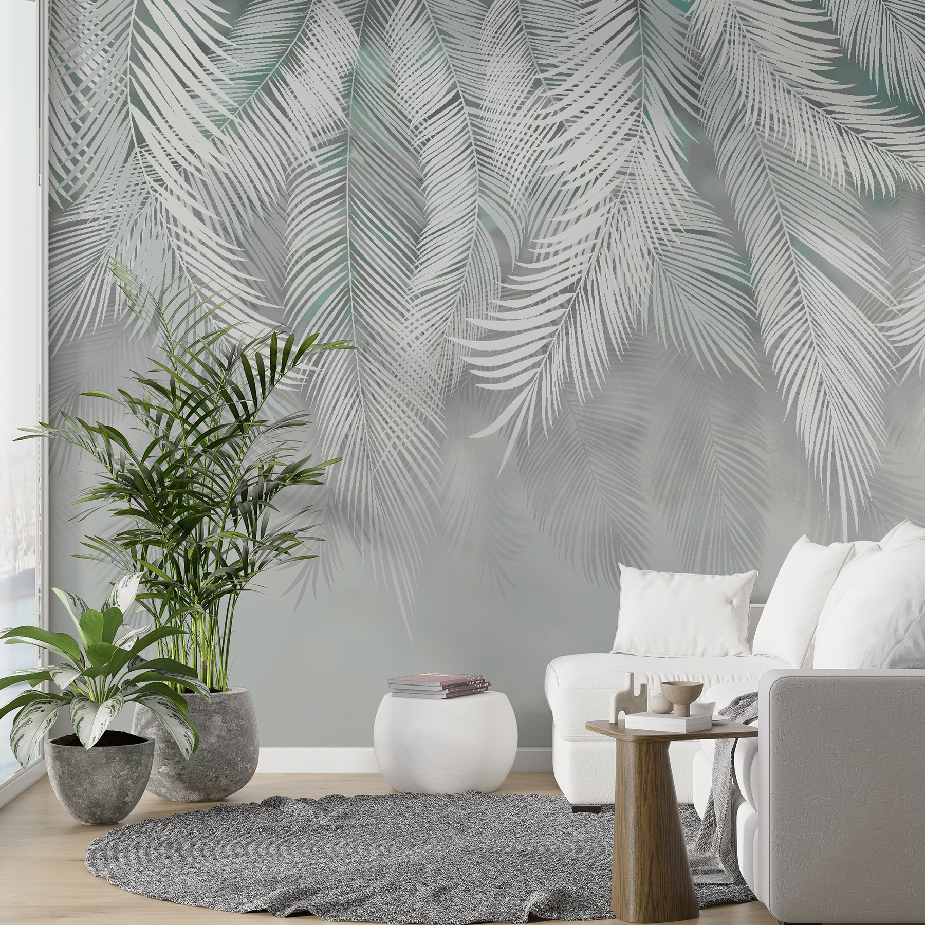2 valoraciones en Fotomurales Elegante motivo de hojas de palmera blancas