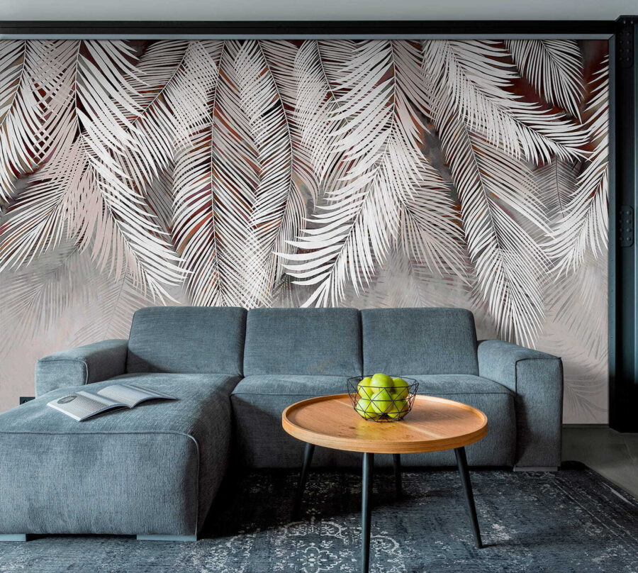 3 valoraciones en Fotomurales Hojas de palmera plateadas sobre fondo suave