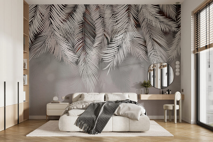 Transforme cualquier habitación con este encantador mural con elegantes hojas de palmera bailando sobre un suave fondo. Imagínese descansando en un rincón acogedor, con el ambiente sereno que le rodea como un cálido abrazo. La sencillez del diseño hace que combine bien con la mayoría de la decoración, ya sea boho chic o minimalista moderna. Imagina la luz filtrándose, proyectando sombras que hacen que las hojas casi se balanceen. Es como traer un trozo de paraíso al interior, perfecto para esos momentos en los que necesitas un poco de evasión. ¿A quién no le gustaría sentirse como en unas vacaciones tropicales todos los días?